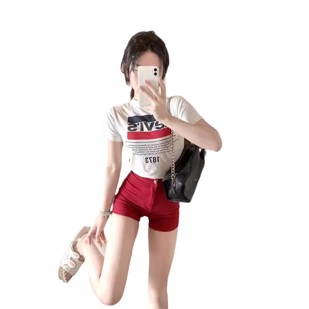 Американский новый стиль горячие девушки красные джинсовые шорты женские носить весной и летом 2024 с высокой талией, бедра, тонкие горячие штаны
