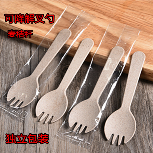 Биоразлагаемая одноразовая вилка и ложка, вилка для торта из пшеничной соломы, вилка для фруктов, десертная ложка, вилка, посуда в индивидуальной упаковке