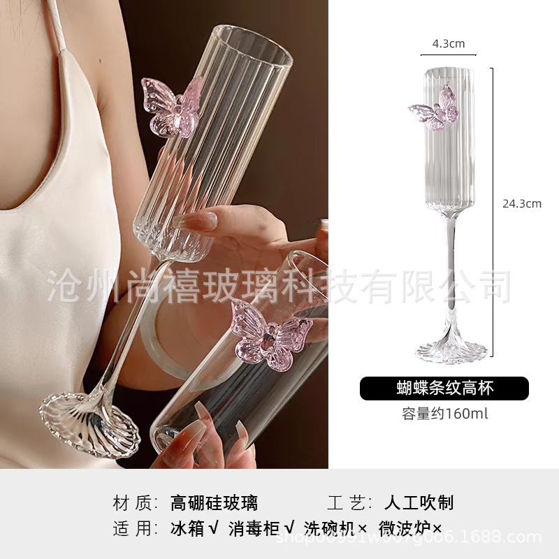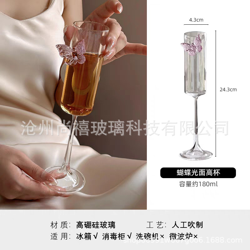 Главная страница > Высококачественный дизайнерский кубок из боросиликата, ценный бокал для вина, бокал для шампанского с бабочкой, милый стиль, коктейльный бокал