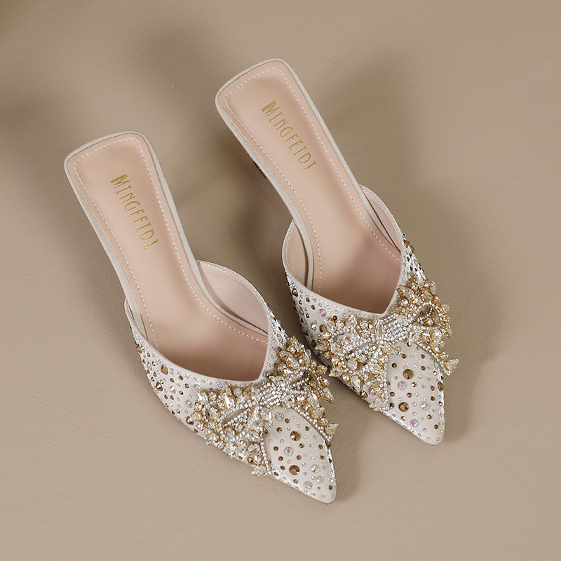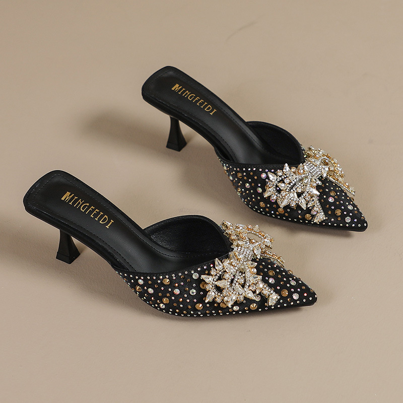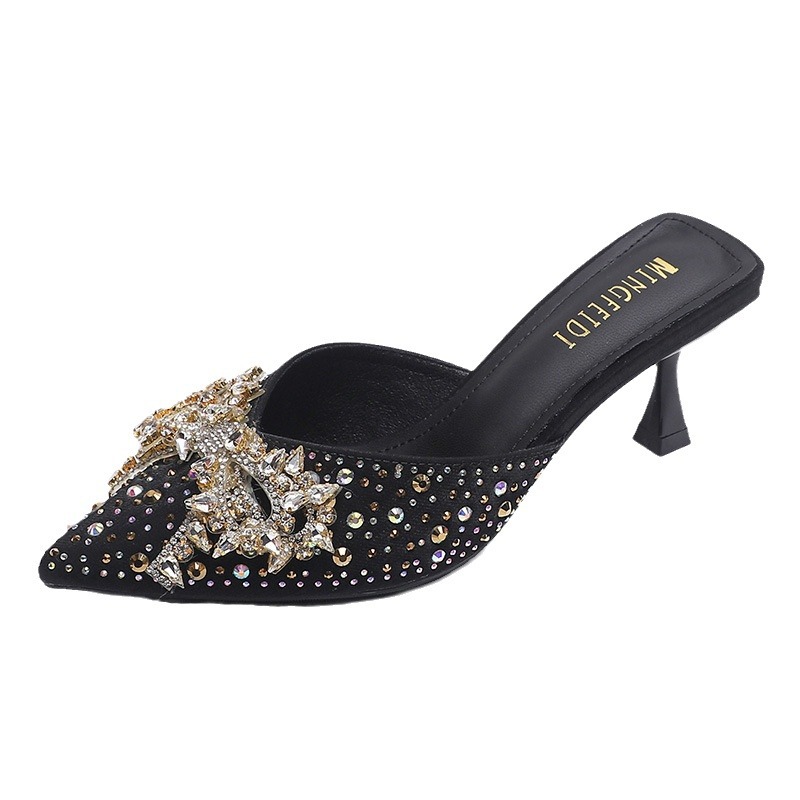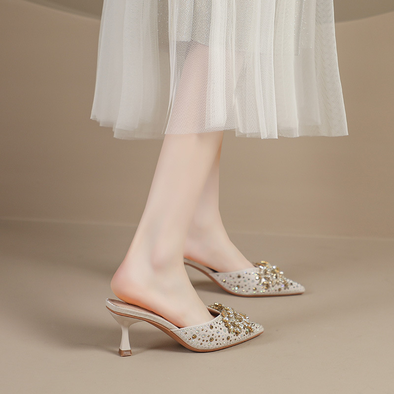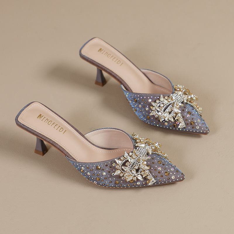 Главная страница > Ледяные шлепанцы со стразами на высоком каблуке женские летние модные остроконечные шлепанцы на каблуках