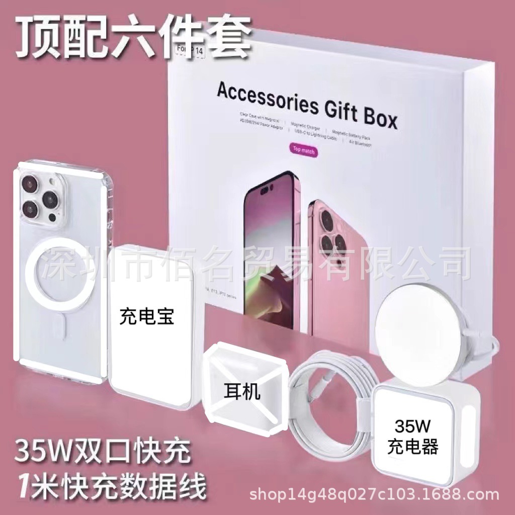 - Набор из шести предметов: одна головка C мощностью 20 Вт + 1m провода + блок питания 5000 мАч + магнитная зарядка + полнофункциональные наушники пятого поколения + чехол для мобильного телефона