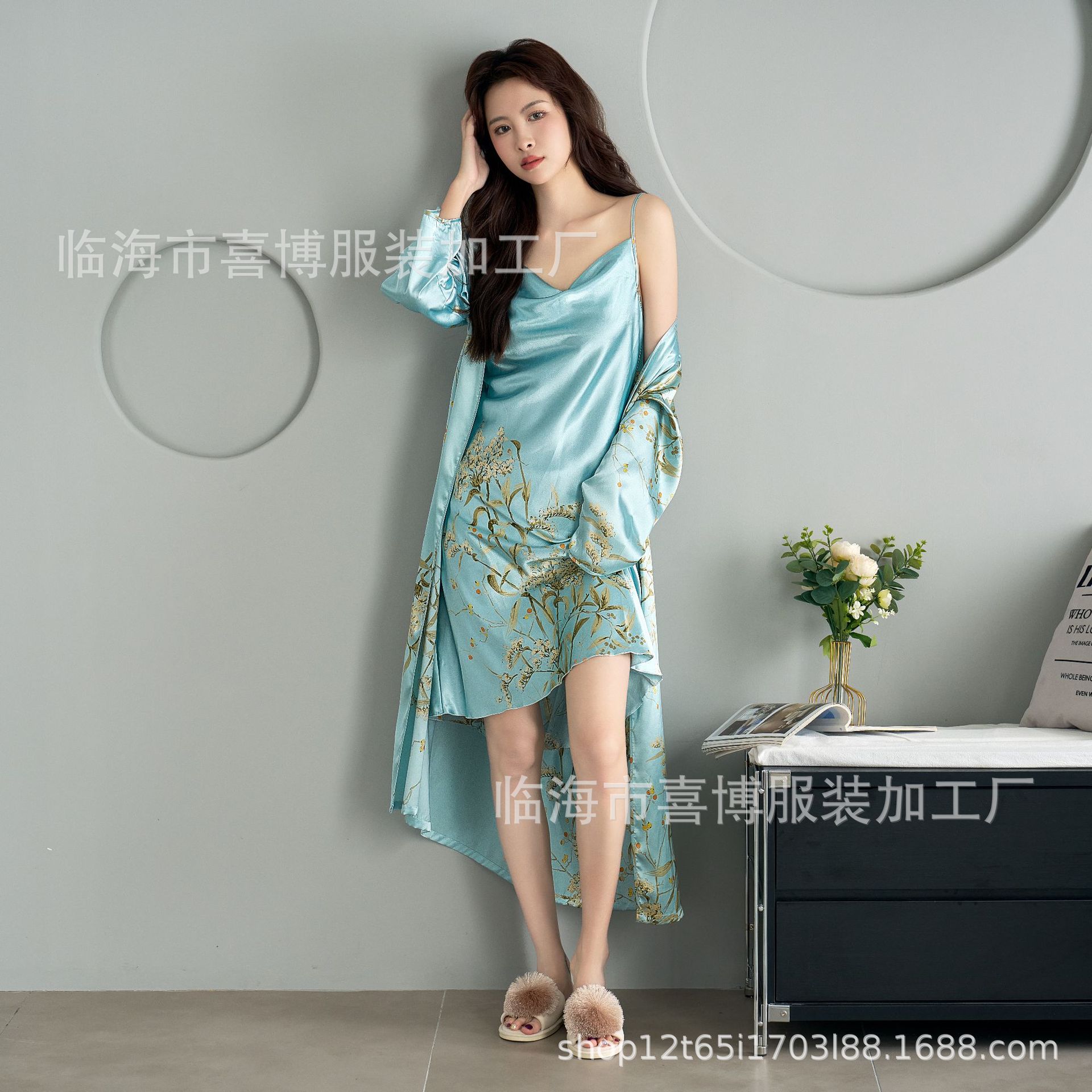 Главная страница > Трансграничное лето сексуальная леди имитация шелковой халат с длинными рукавами, халат, халат, модная тонкая домашняя одежда