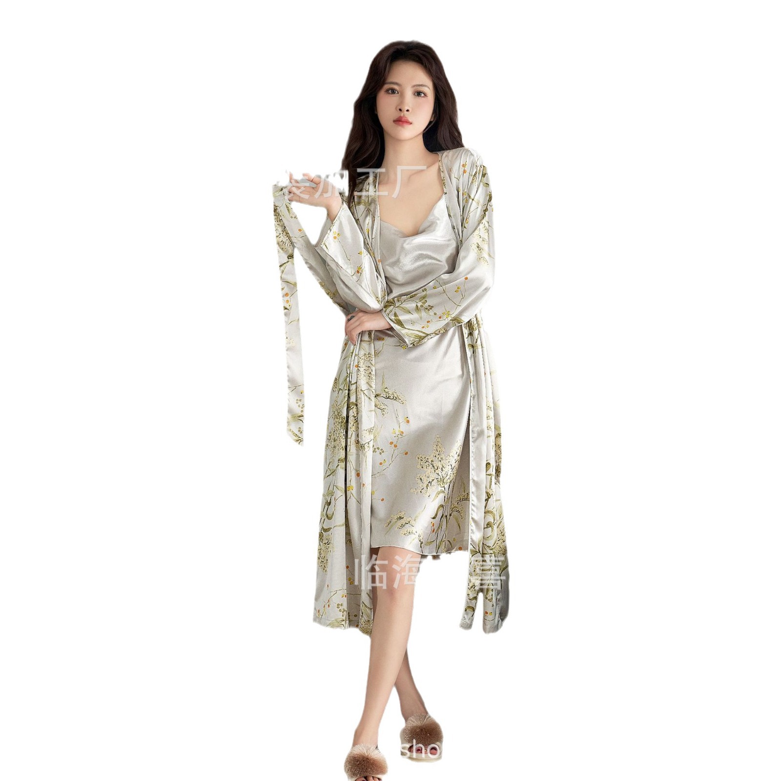 Трансграничное лето сексуальная леди имитация шелковой халат с длинными рукавами, халат, халат, модная тонкая домашняя одежда