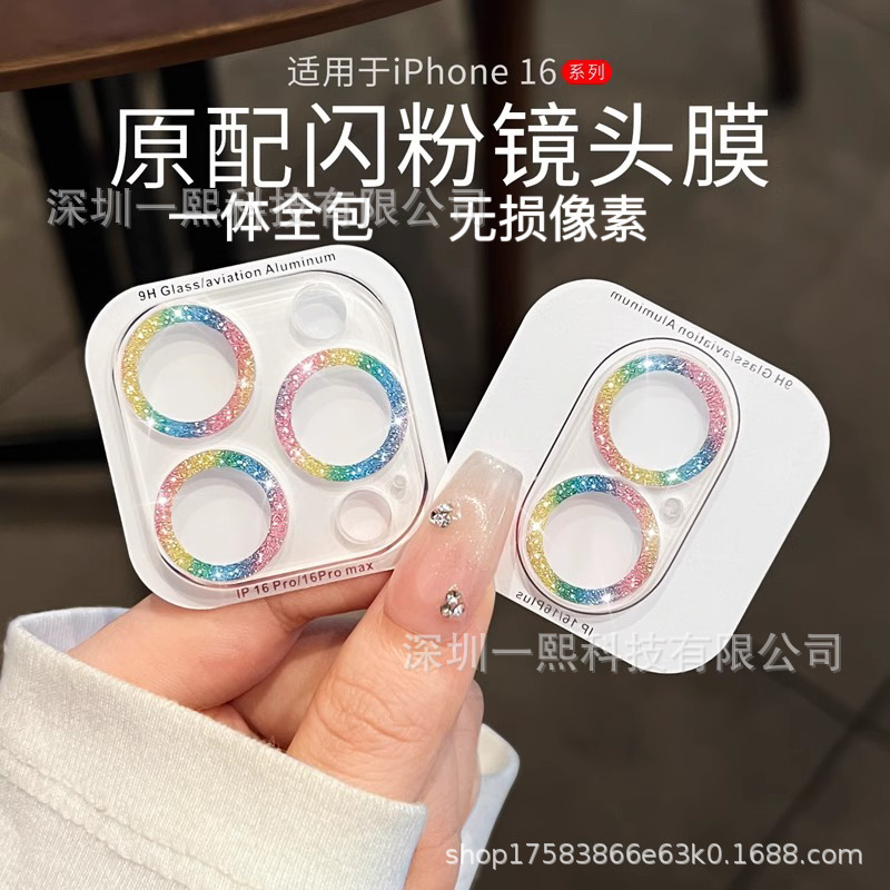 Главная страница > Цветная блестящая защитная пленка для объектива iPhone 17 Pro Max, 16/15, антицарапинная и износостойкая, полное покрытие, закаленная пленка 14