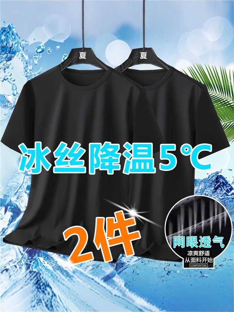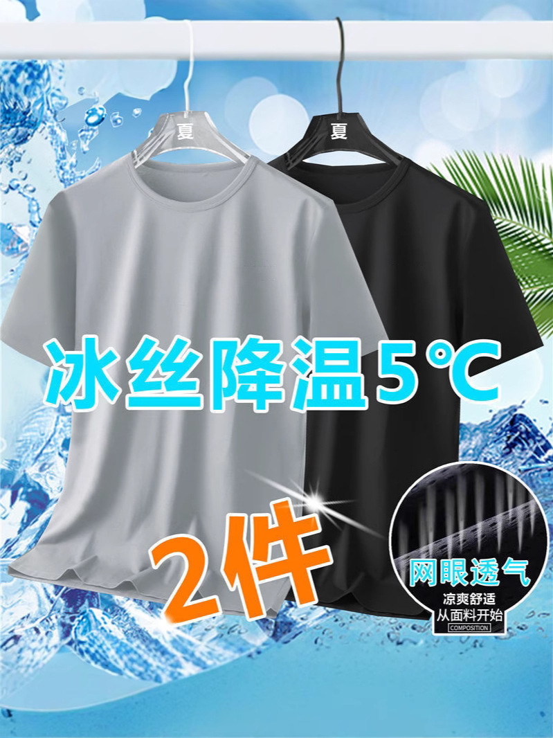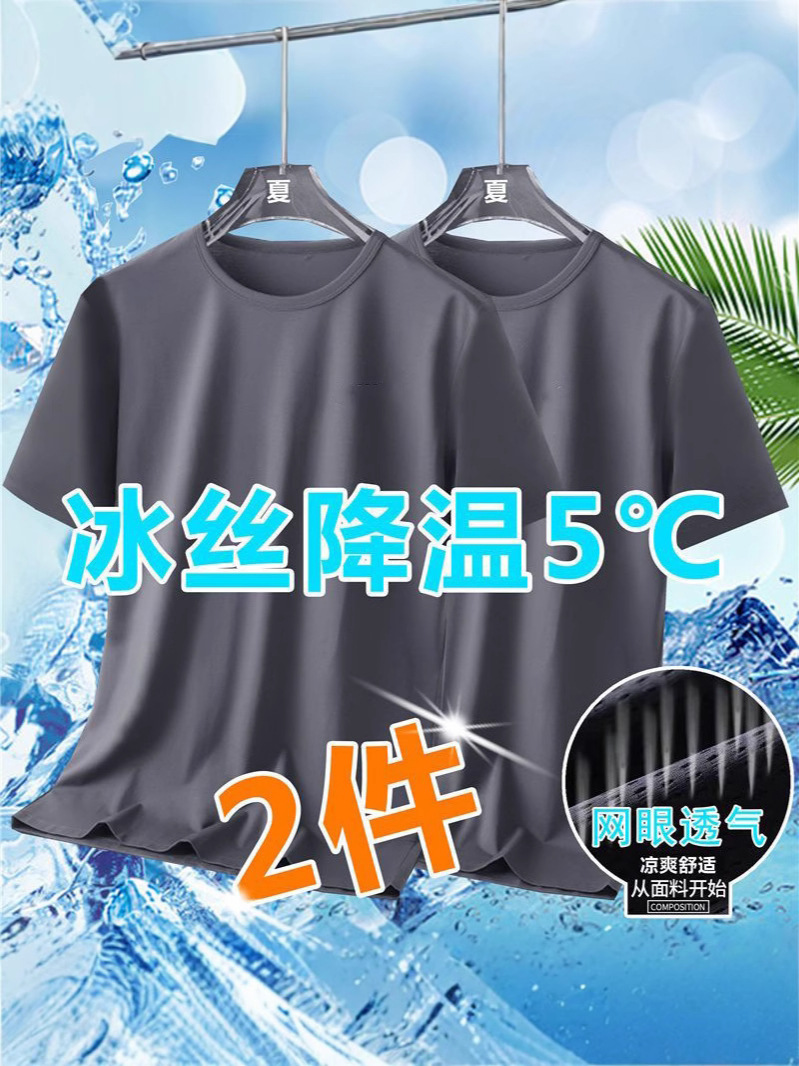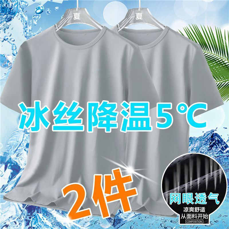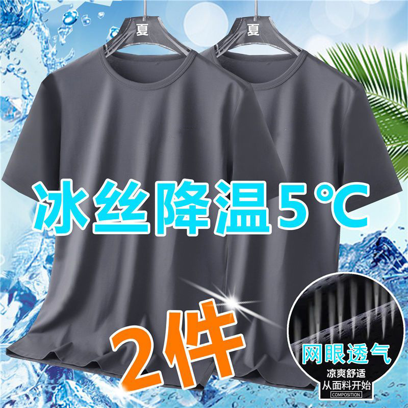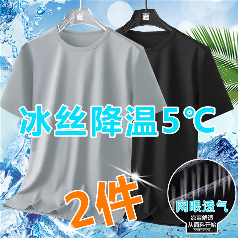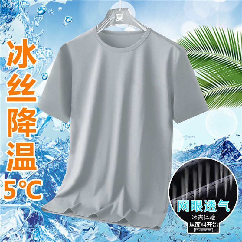 Оптовая продажа 2024 летняя футболка с короткими рукавами из ледяной шелк для мужчин свободный большой размер простой дикий цвет сетки сплошной повседневный дышащий