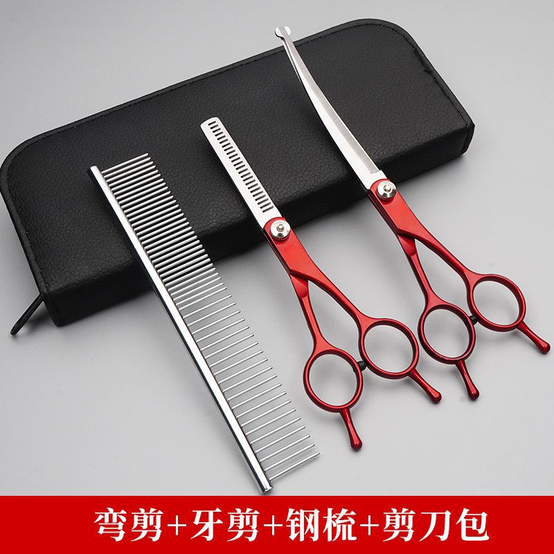 Красный ноготь с двойным хвостом Dragon Blood#Изогнутые ножницы + стальная расческа