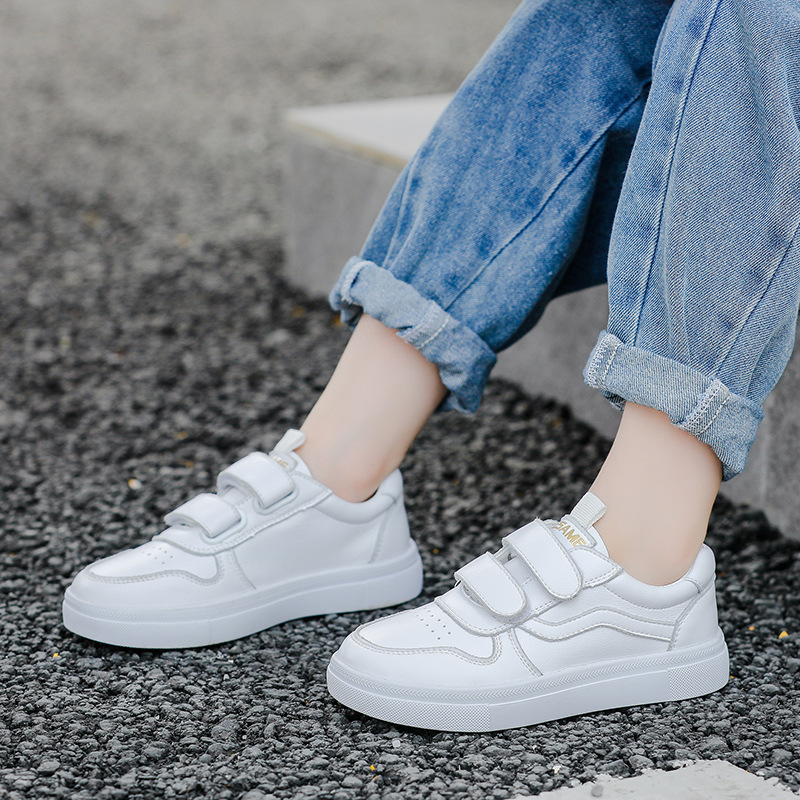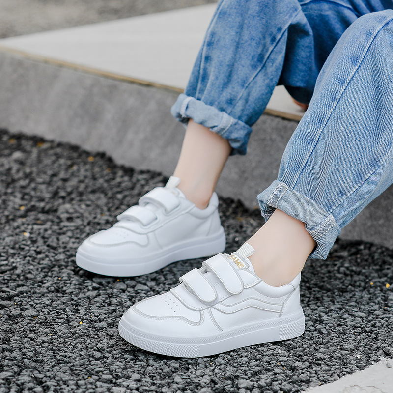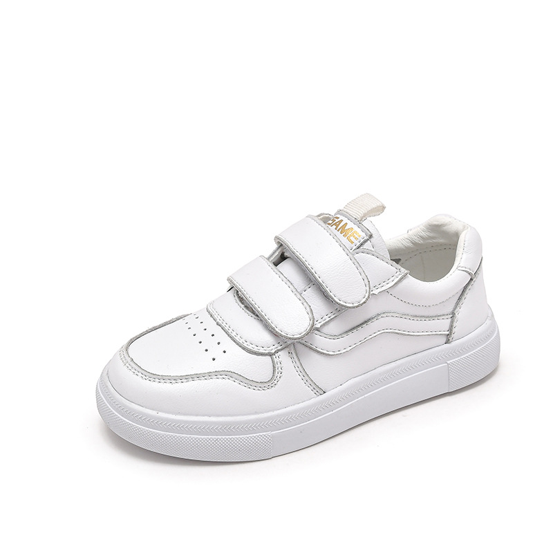 Главная страница > Детские кроссовки весна-осень 2025, повседневные белые кеды для мальчиков и девочек на липучке, дышащие, из коровьей кожи, оптом.