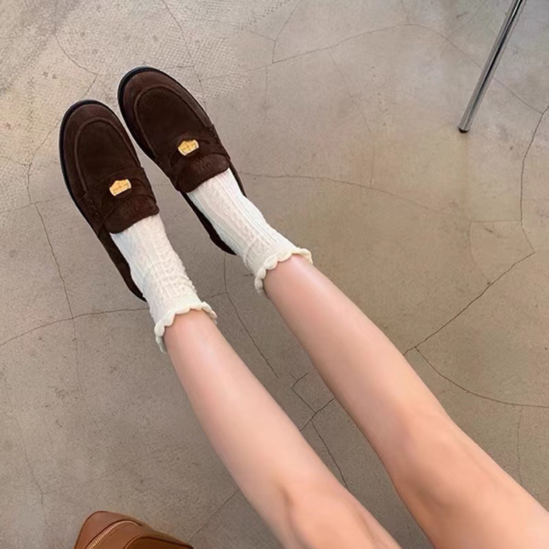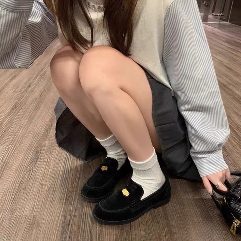 Домашние замшевые лоферы без шнуровки Miu, новинка 2023 года, ленивые туфли, одиночные туфли на плоской подошве, британская кожаная обувь для женщин