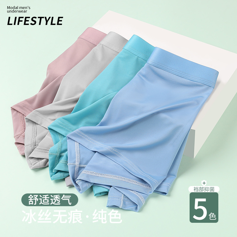 Главная страница > Мужское нижнее белье из ледяного шелка Мужские боксеры Однотонное нижнее белье из чистого хлопка с шаговым швом Летние дышащие быстросохнущие брюки для молодых мальчиков с четырьмя углами
