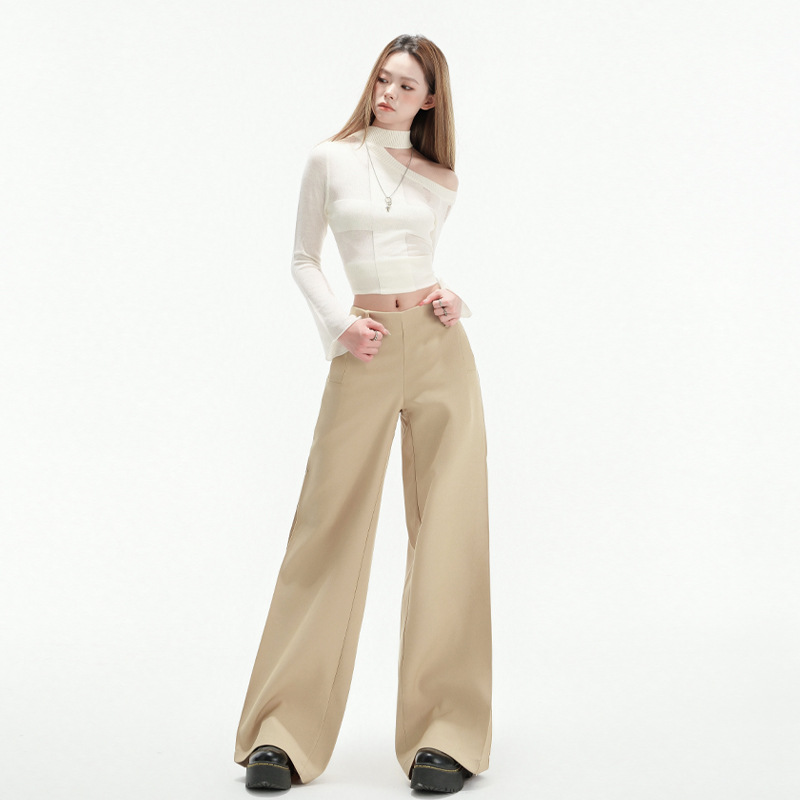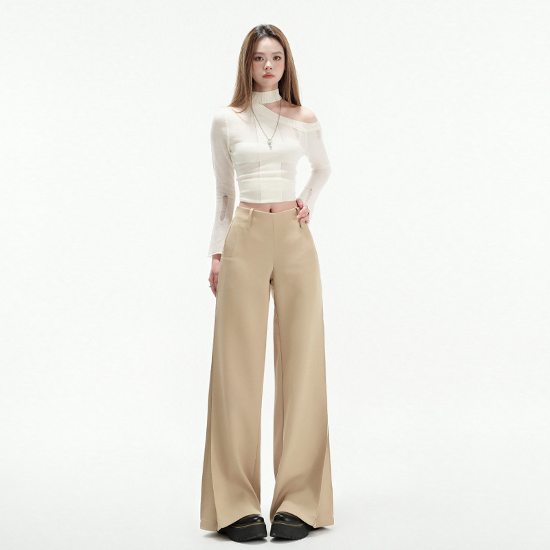Главная страница > Европейские и американские брюки-палаццо цвета хаки для женщин, новинка осени 2025, с низкой посадкой, облегающие, повседневные, широкие, в пол