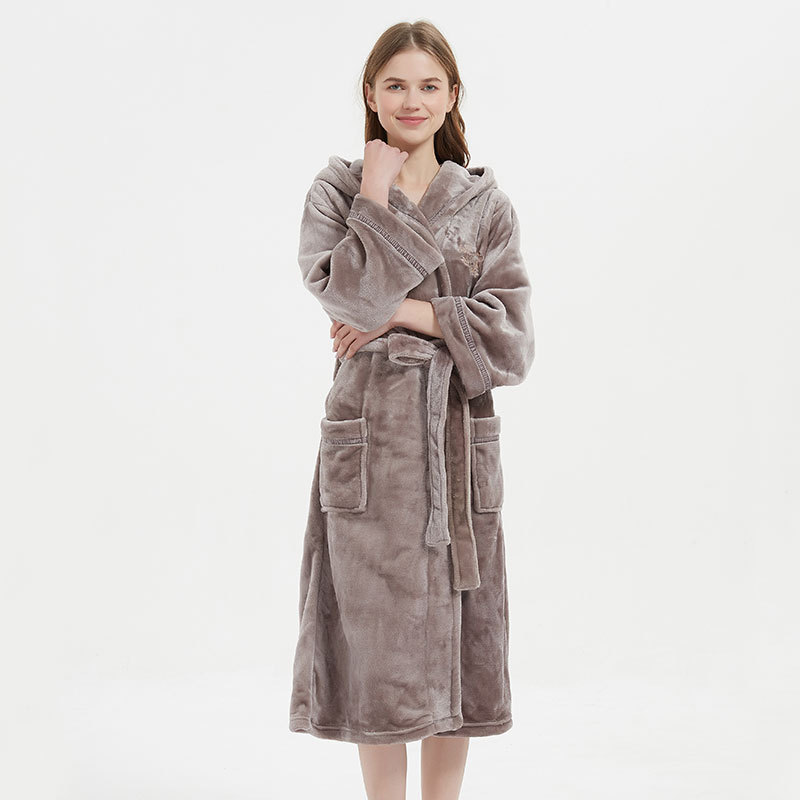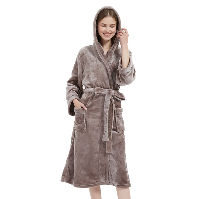 Главная страница > Трансграничный халат по индивидуальному заказу для женщин, специальная ночная рубашка для гостиничного салона красоты, фланелевой водопоглощающий, быстросохнущий, утолщенный халат с капюшоном