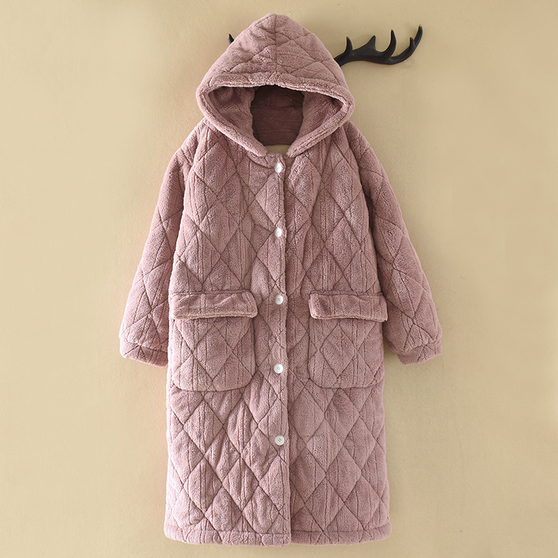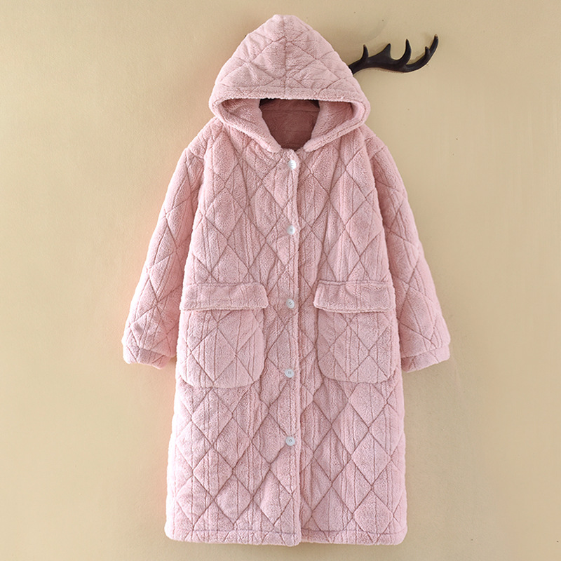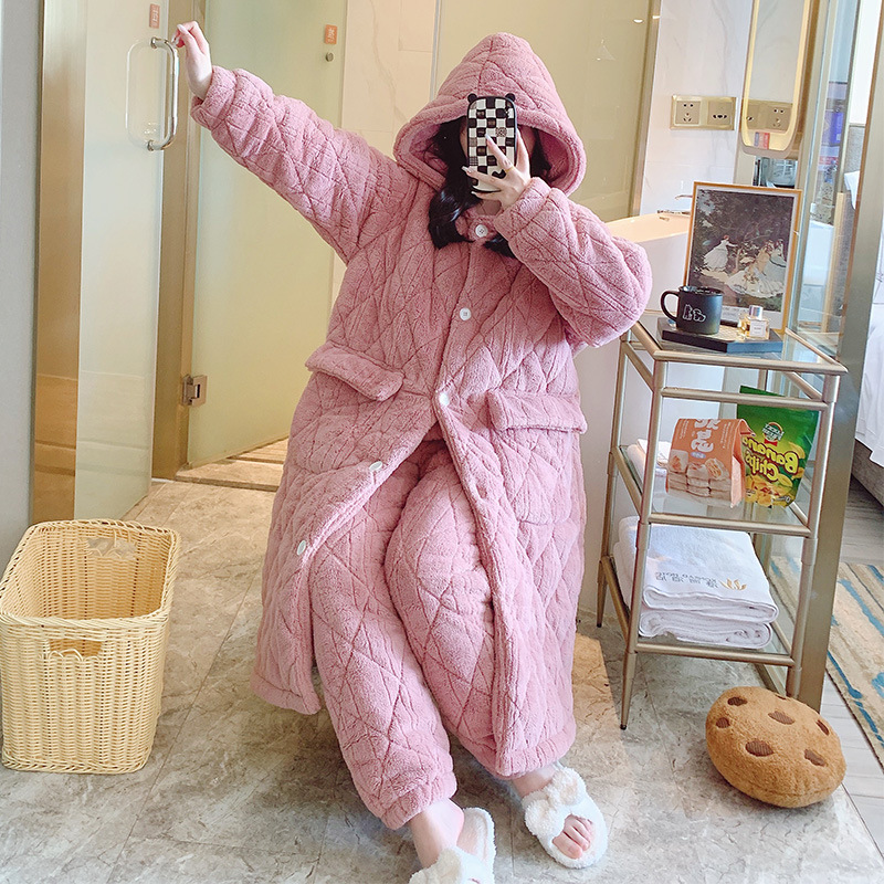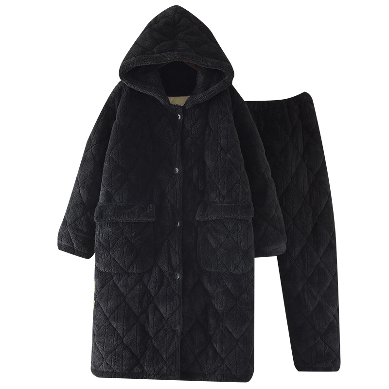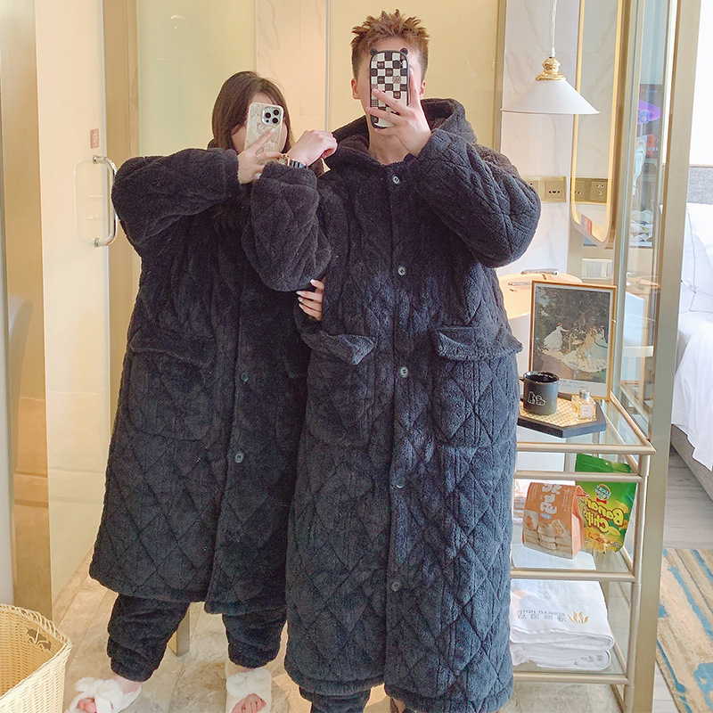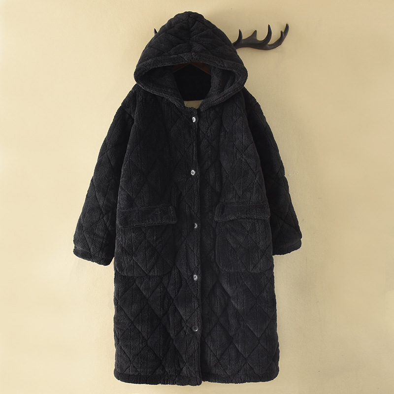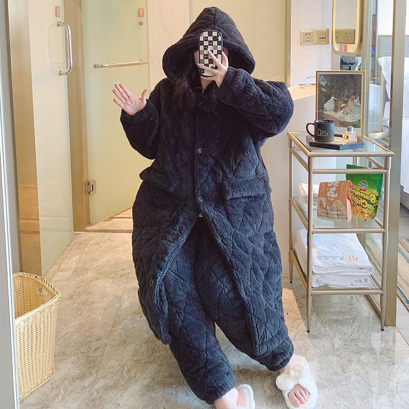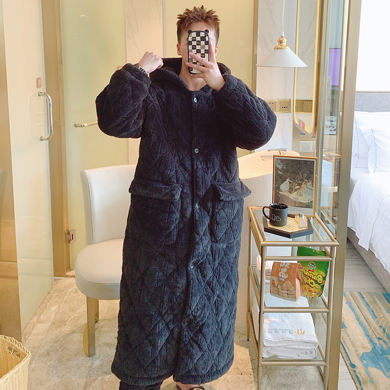 Очень толстый студент черный халат на молнии с капюшоном толстый, длинная пижама коралловый бархат осенью и зимой