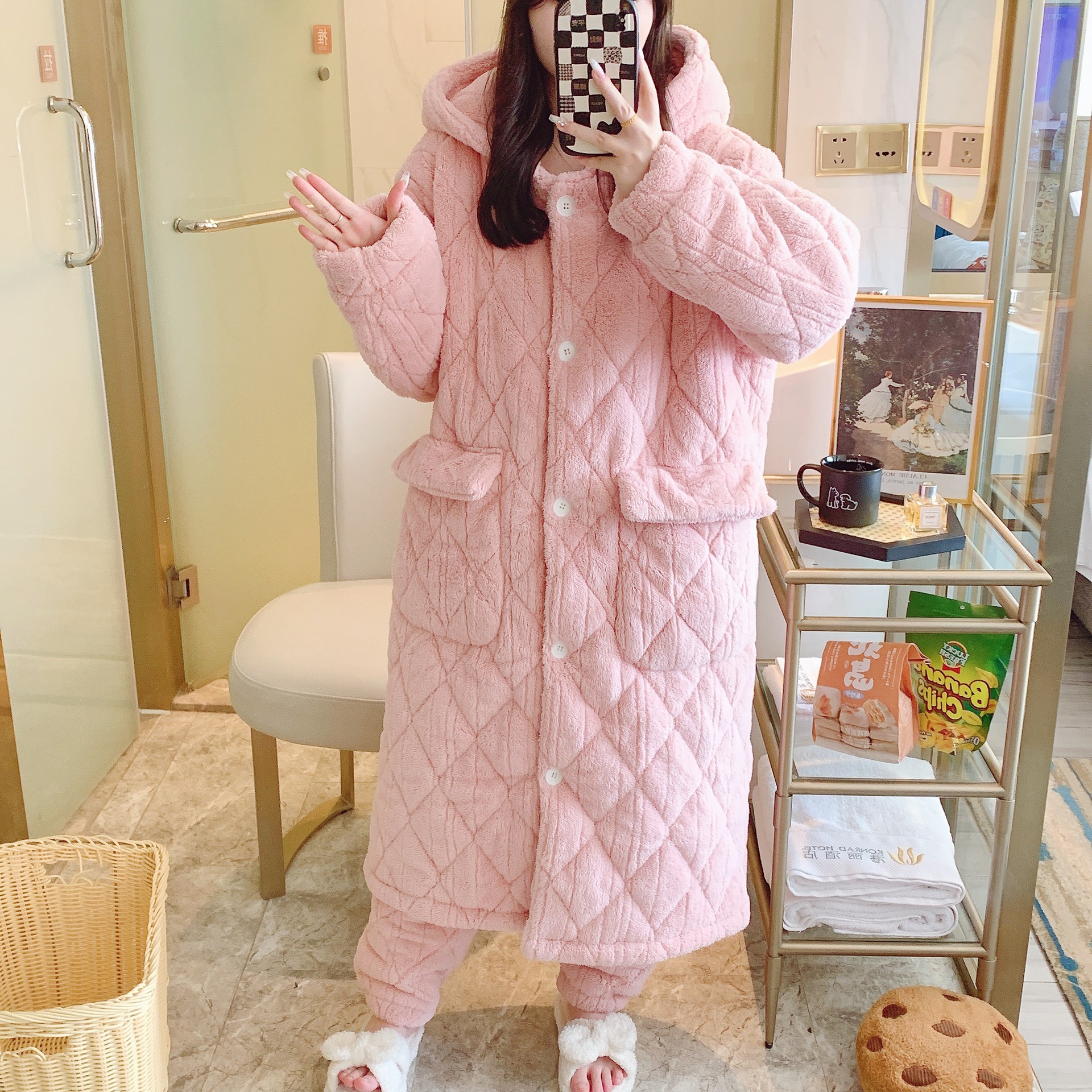 Главная страница > Очень толстый студент черный халат на молнии с капюшоном толстый, длинная пижама коралловый бархат осенью и зимой