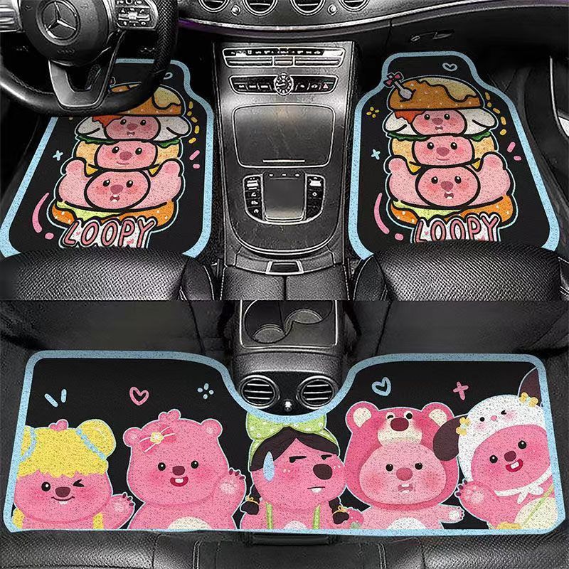 Автомобильные коврики с мультяшной шелковой петлей, универсальные автомобильные коврики для вождения, цельный задний коврик для удаления пыли, легкие в уходе коврики, Прямая доставка