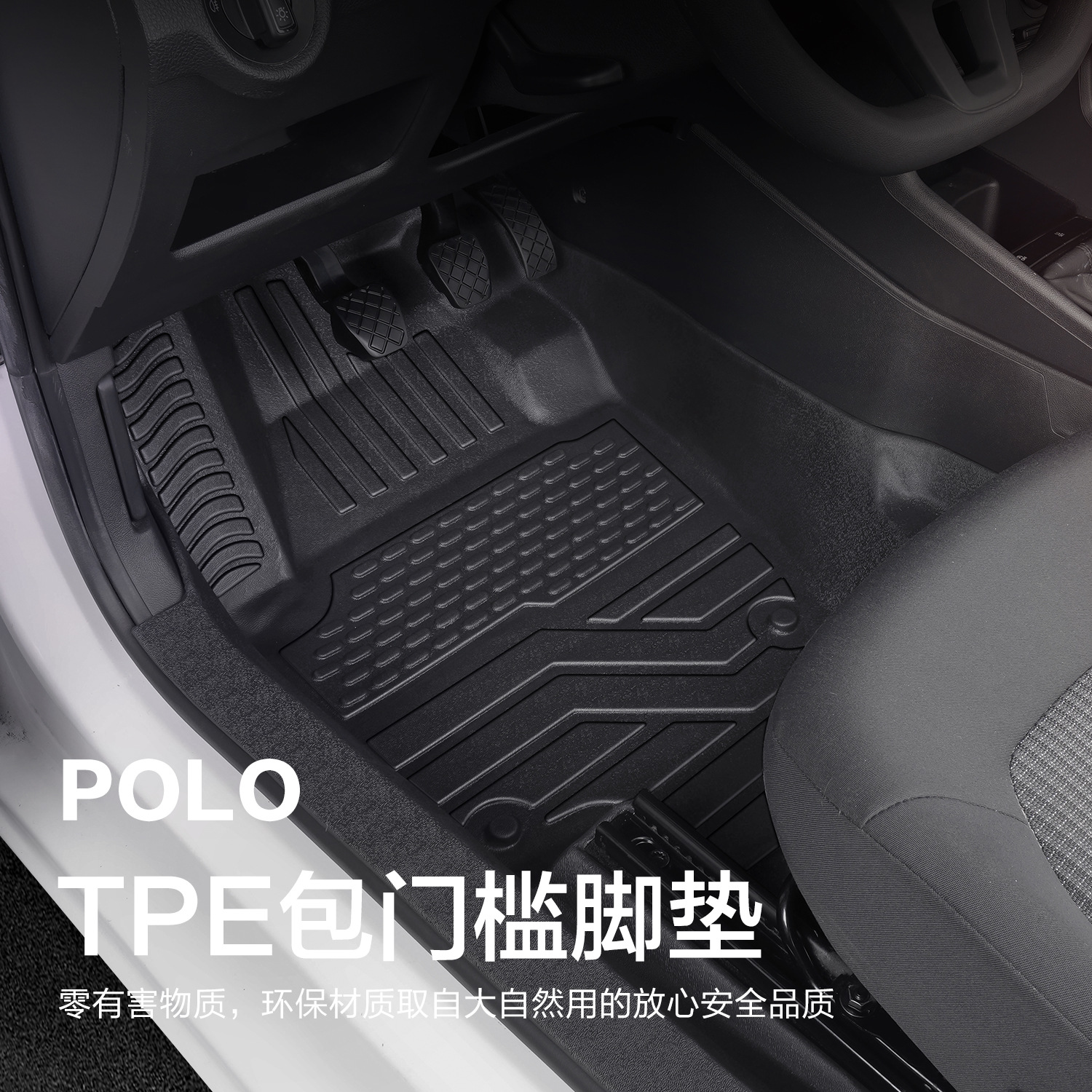 大众POLO【TPE包门槛脚垫】+黑色纳米绒