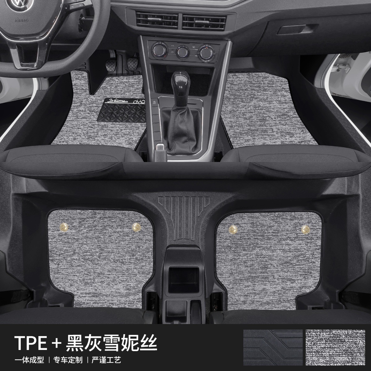 大众POLO【TPE包门槛脚垫】+黑灰雪妮丝
