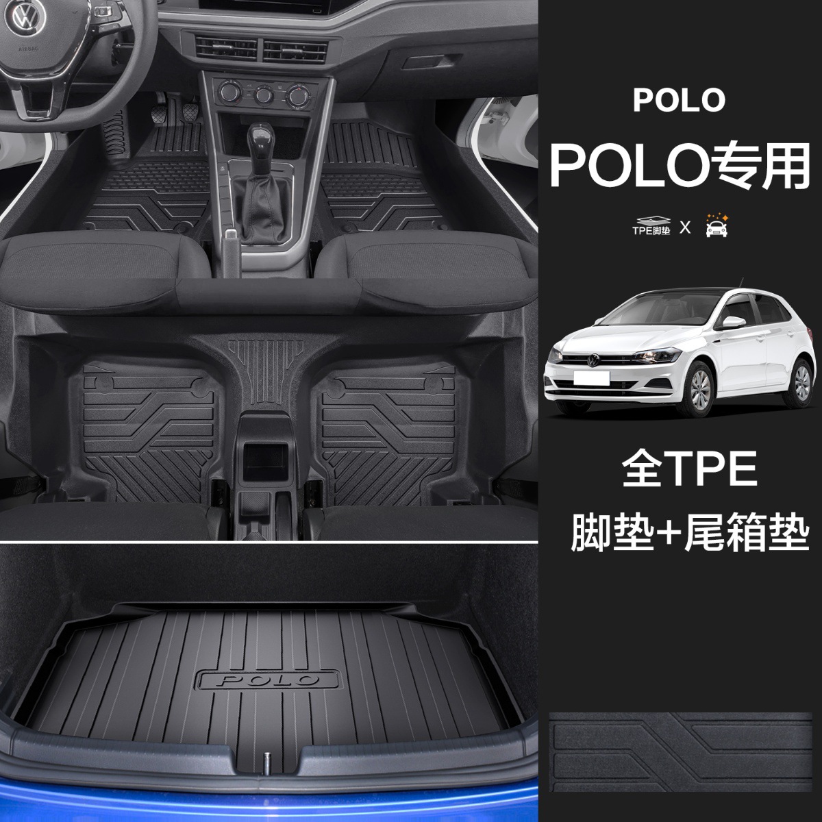 大众POLO【TPE包门槛脚垫】+TPE后备箱垫