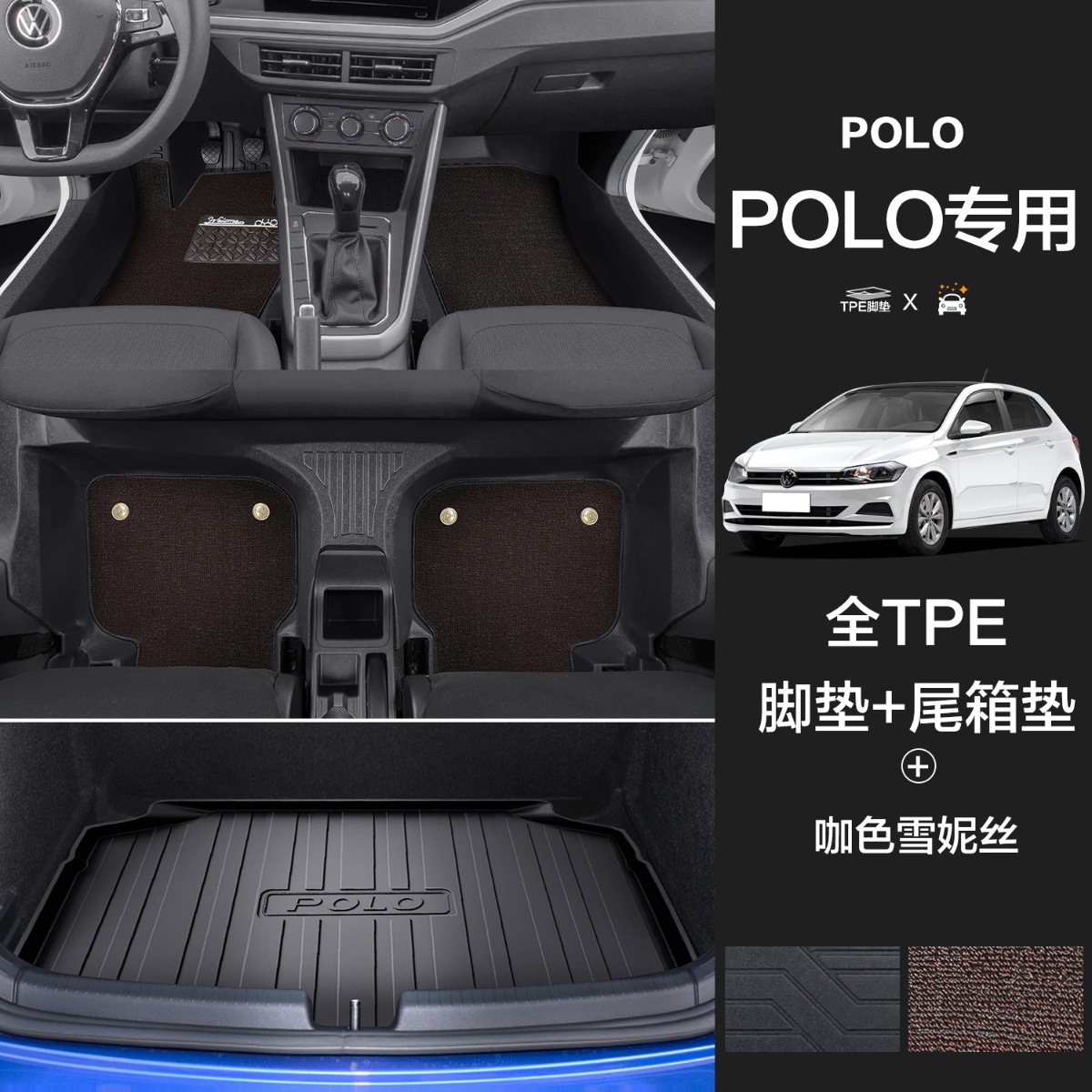 大众POLO【TPE包门槛脚垫】+咖色雪妮丝+TPE后备箱垫