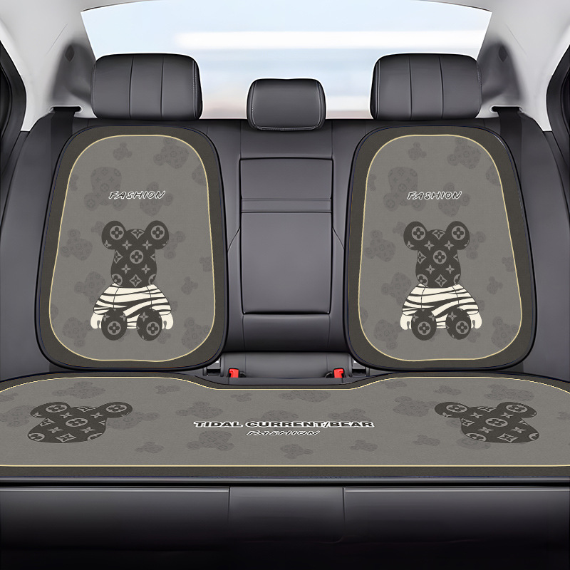 E0059I-C темно-серый принт медведь (комплект из трех частей для заднего ряда) (подушка заднего сиденья 1 + спинка 2