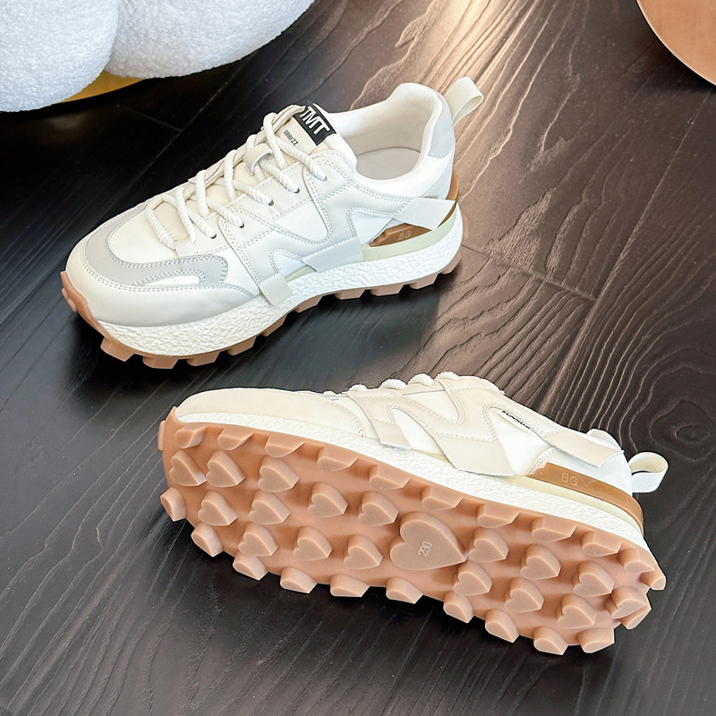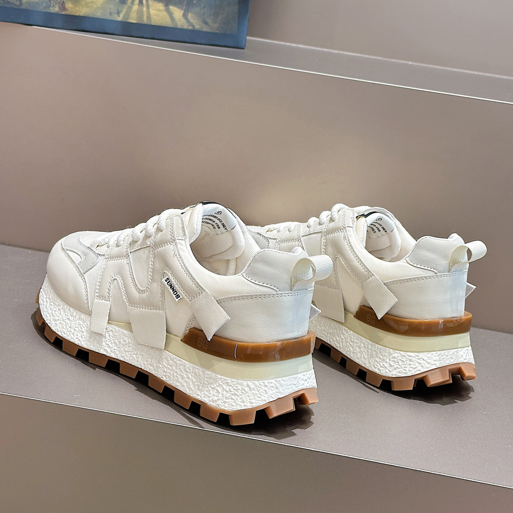 Главная страница > Кроссовки Agan Waffle Shoes 2025 Весна Универсальные Женские Кроссовки на Толстой Подошве с Эффектом Роста Модные Повседневные Белые Кроссовки в Стиле "Папины Туфли".
