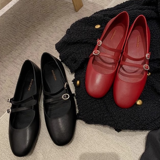 Главная страница > В наличии, отправка немедленно! Туфли в стиле Grape Mom, милый круглый носок, двойной ремешок с камнями, туфли Мэри Джейн на низком каблуке для повседневной носки.