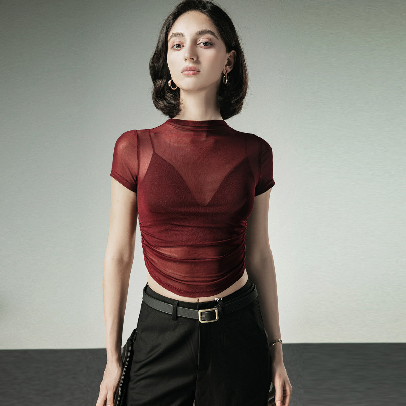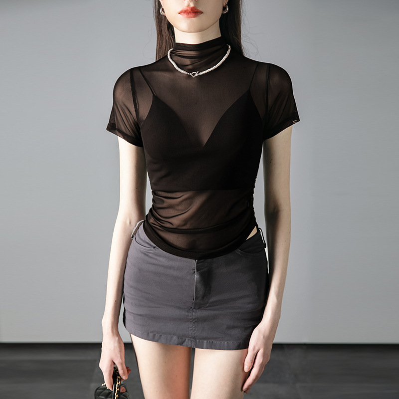 Главная страница > Летний новый короткий блузный дизайн блузка тонкая сетчатая футболка с короткими рукавами