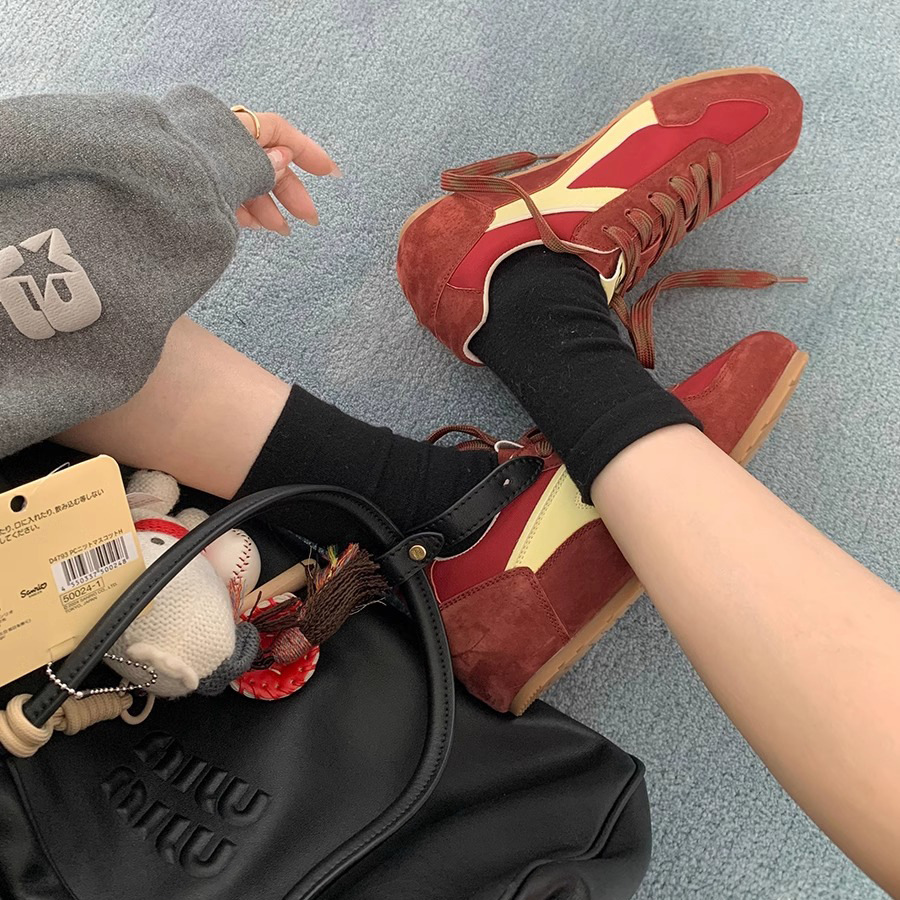 Квадратная голова ангольская красная доска обувь женская контрастная повседневная обувь на толстой подошве