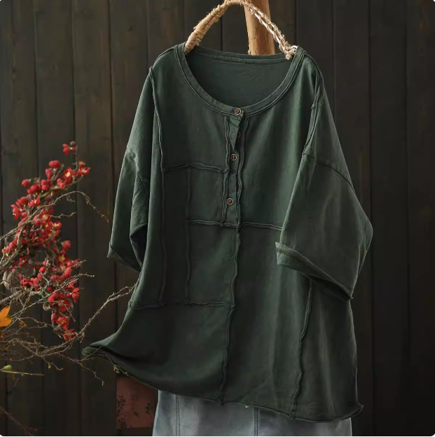 Главная страница > Летняя женская рубашка-кардиган свободного кроя, ретро-стиль, однотонная, короткий рукав, большой размер, 2025 г.