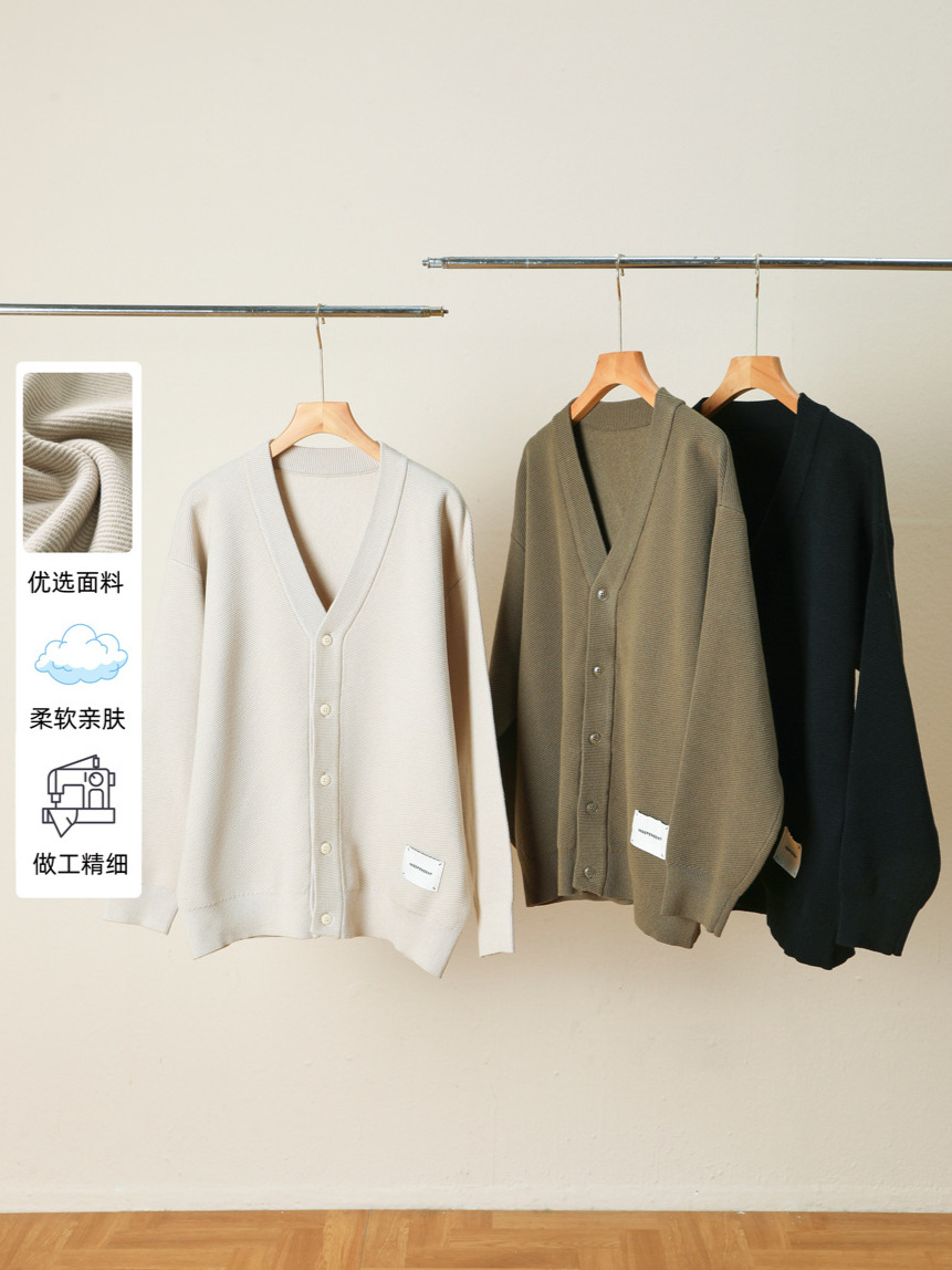 Главная страница > Мужской вязаный свитер сплошной цвет V-образный вырез Нижняя рубашка с пуговицами кардиган осенний новый ленивый стиль вязаный кардиган