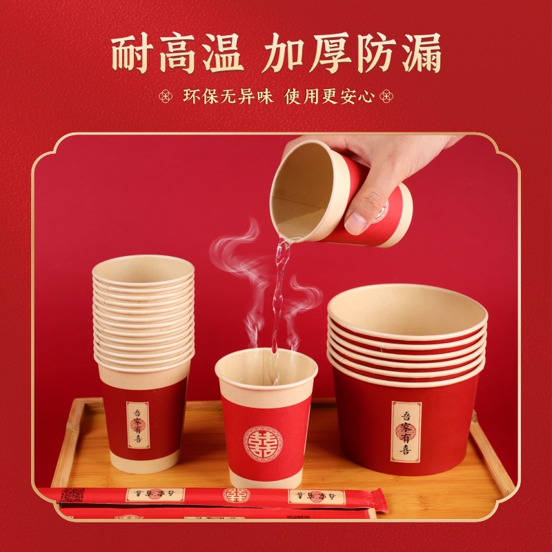Гу Юэтянь представляет собой одноразовую бумажную миску для свадьбы утолщенную красную чашку праздничный банкет