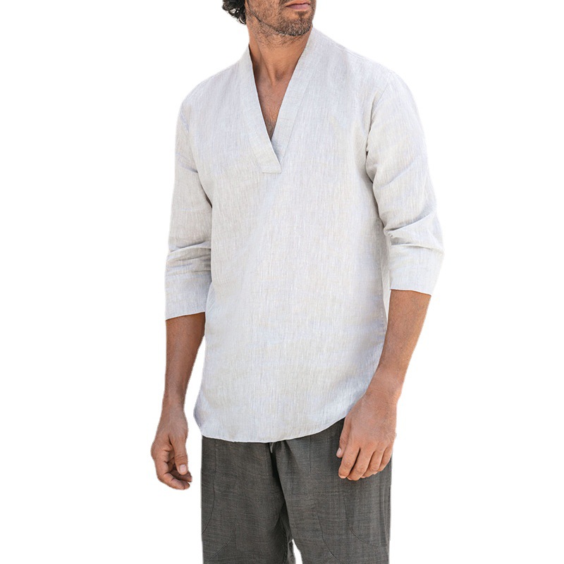 Внешняя торговля Amazon 2024 Европейская и американская мужская футболка из хлопка и льна, мужская рубашка с длинными рукавами для отдыха и отдыха, трансграничная оптовая продажа