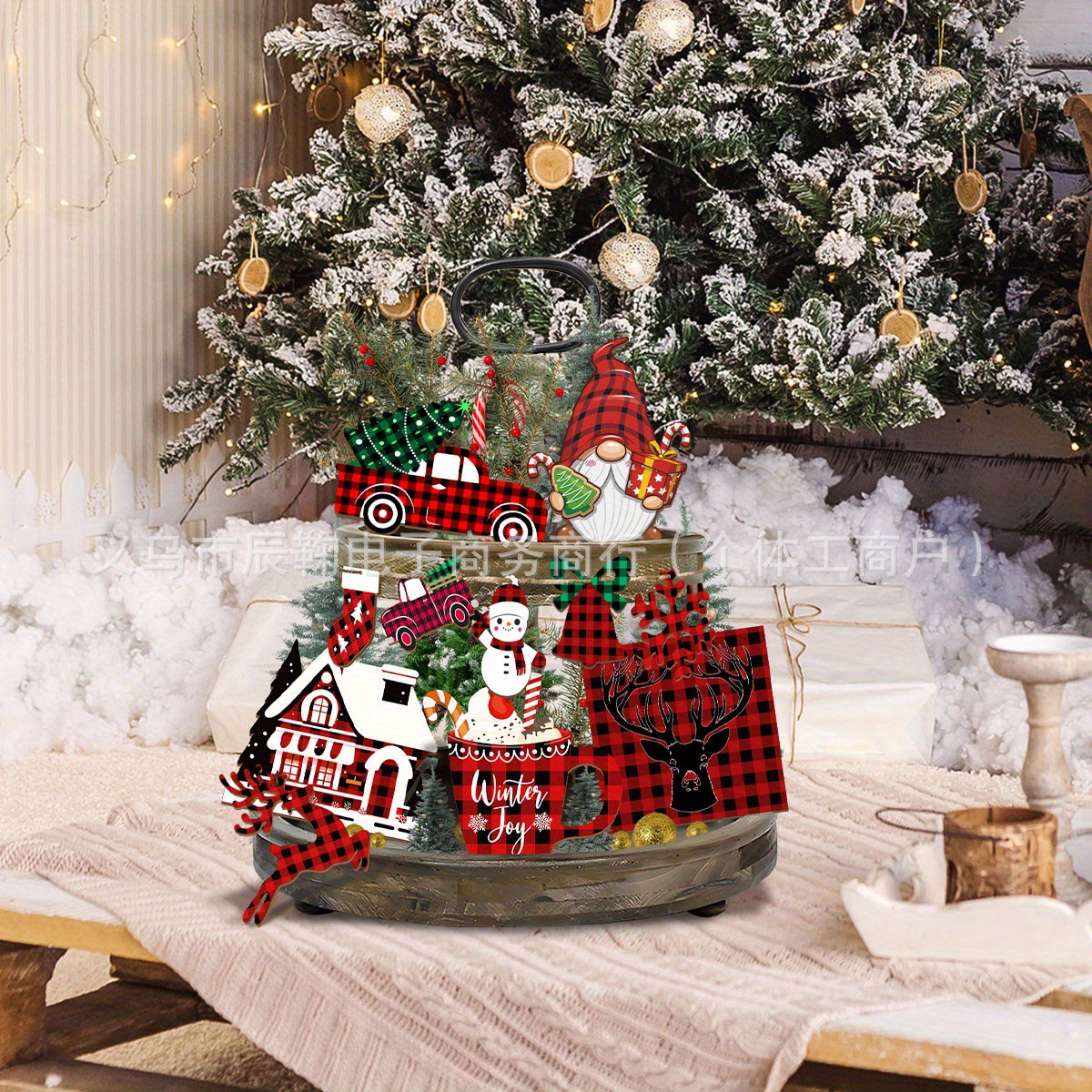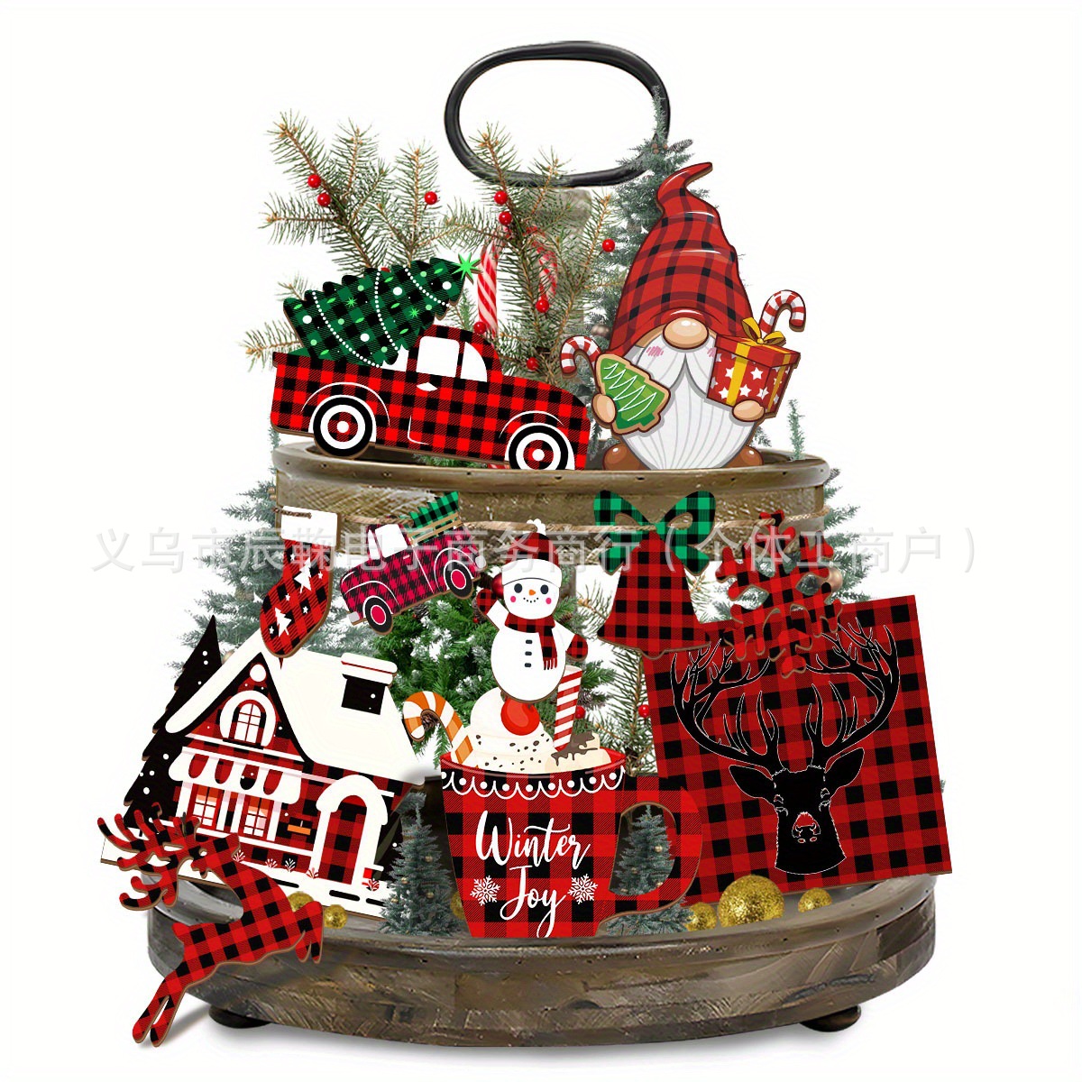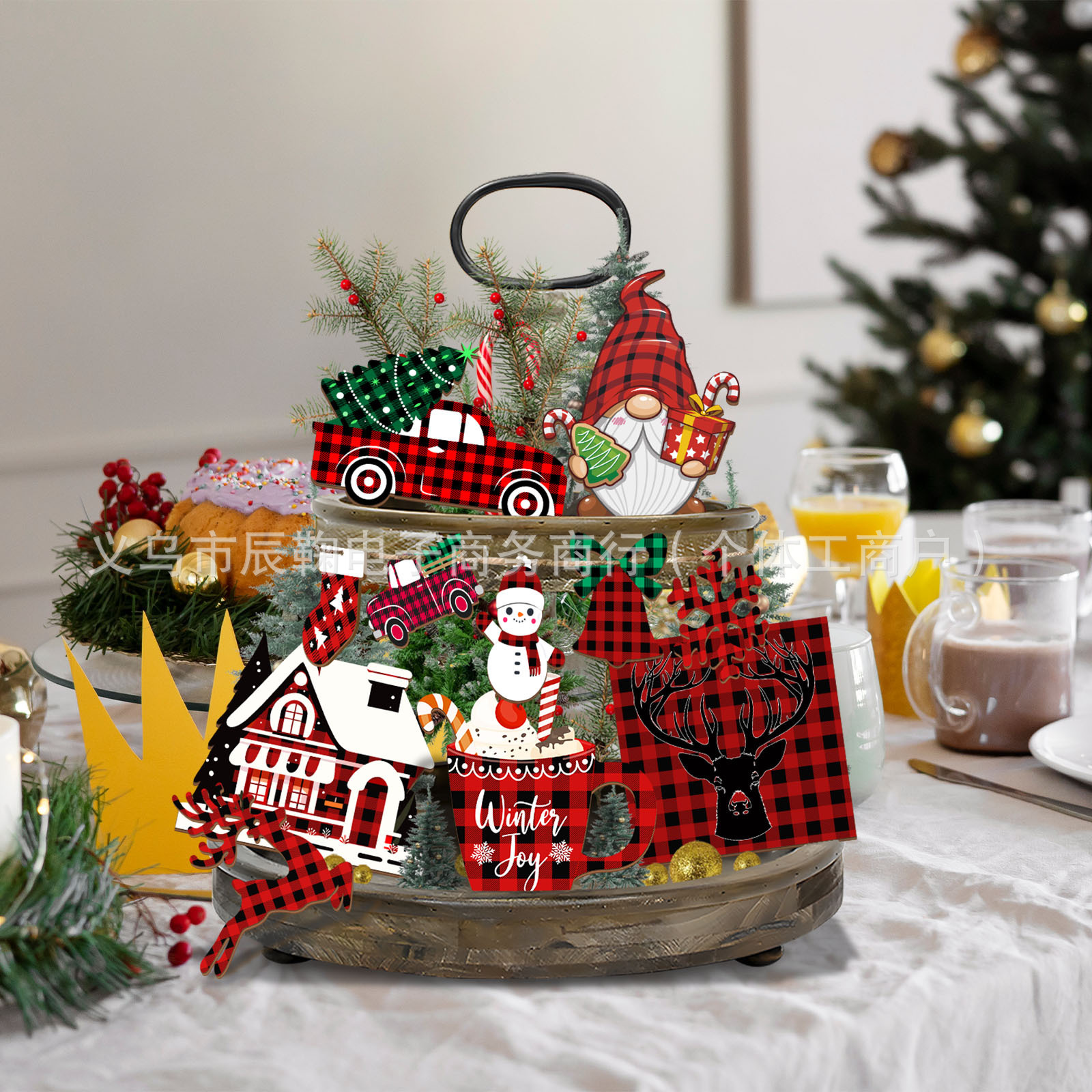 Трансграничный точечный рождественский многослойный поднос с деревянными украшениями в клетку буйвола, карточка фермерского дома, логотип рождественской елки