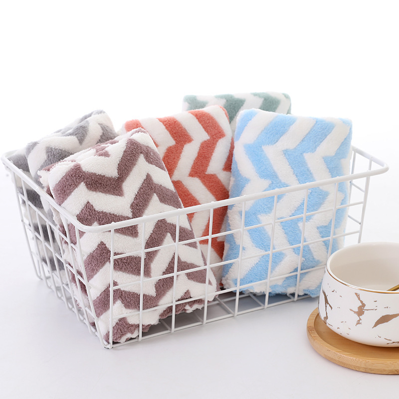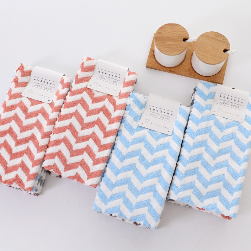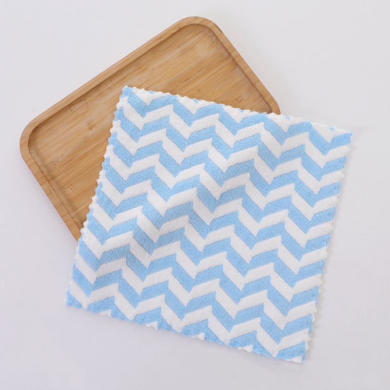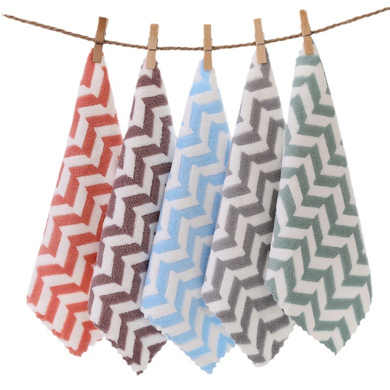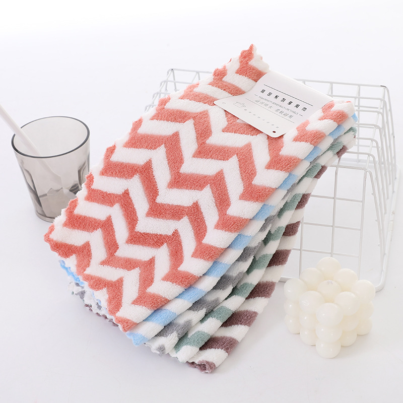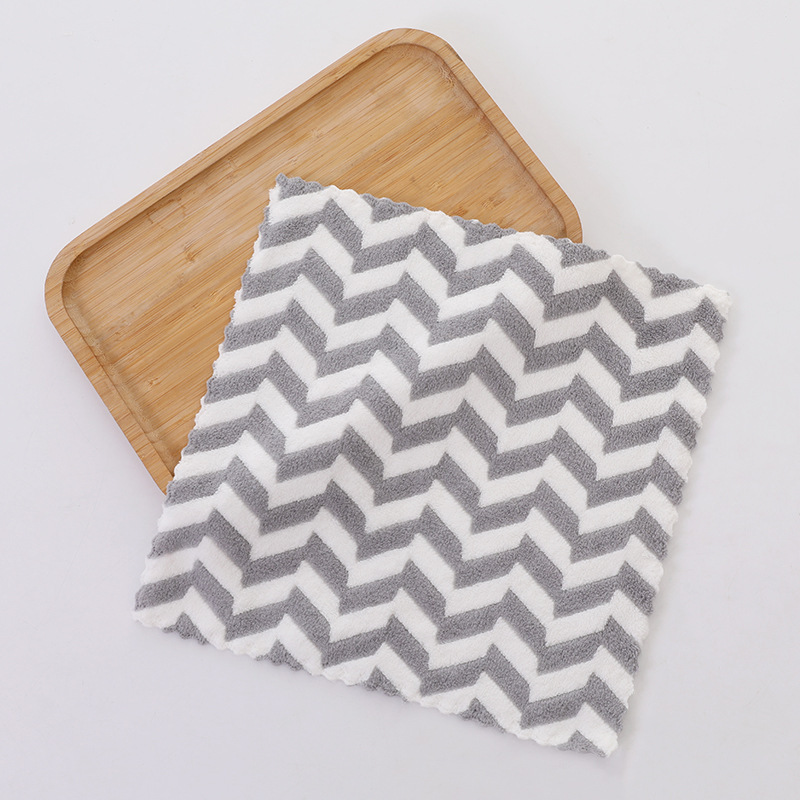 Главная страница > Небольшой квадратный шарф Коралловый бархат полотенце полосатое впитывает воду и утолщает кухонные чистящие руки для быстрой сушки Высокоплотная тряпка маленькое полотенце