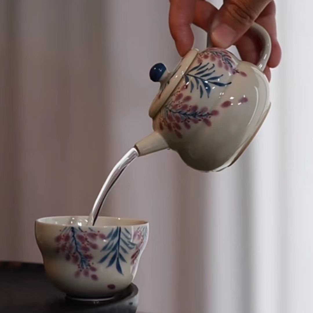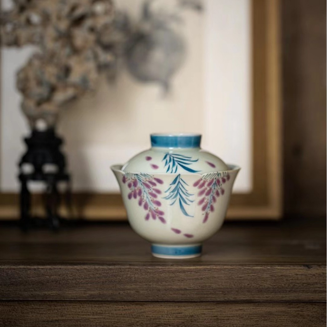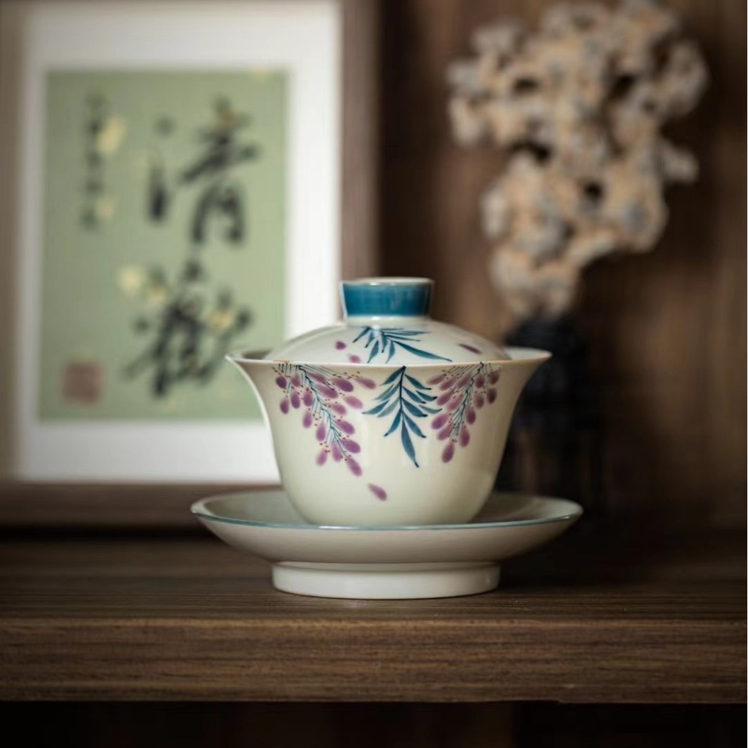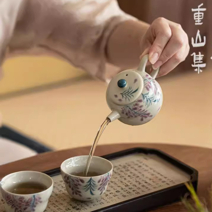 Главная страница > Травяной пепел рисованной глициния цветок кунг-фу чайный чайник чайная чашка домашняя комбинация чайного сервиза, один горшок и две чашки