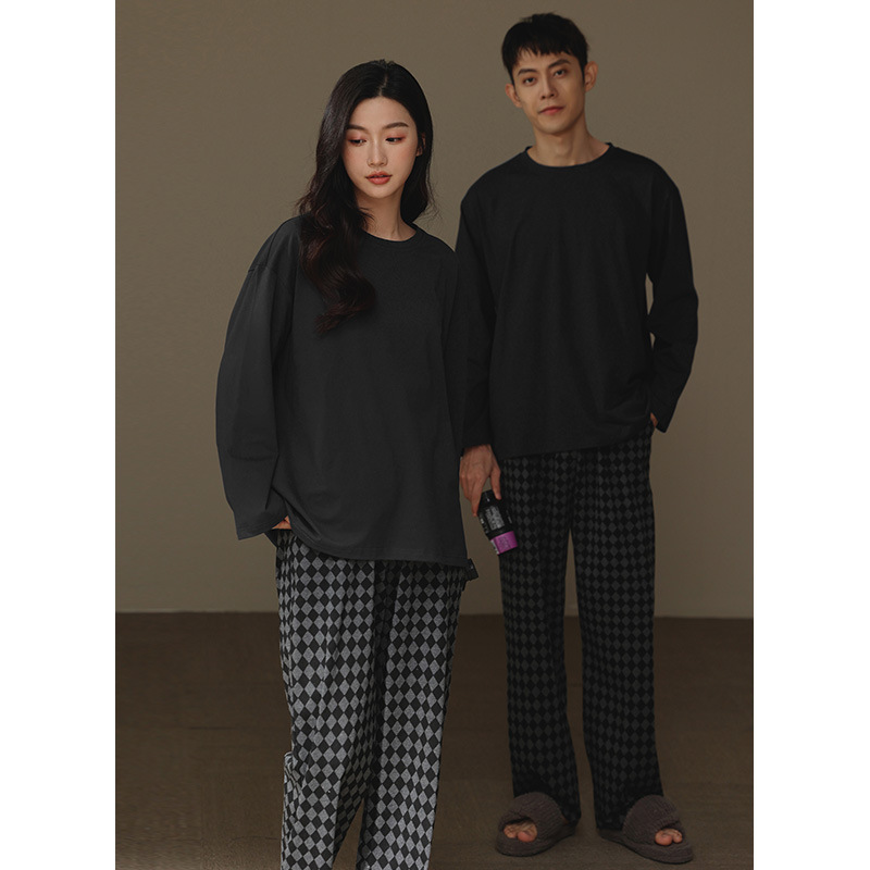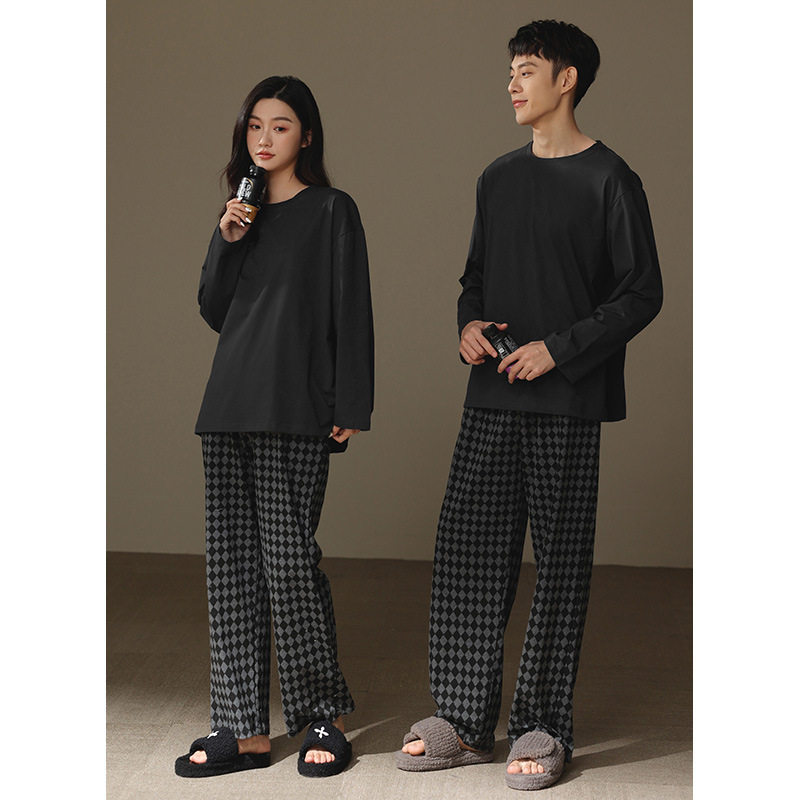 Главная страница > 2023 новая Пижама для пар для мужчин и женщин весна и осень хлопок с круглым вырезом с длинным рукавом темно-серые платные брюки Домашняя одежда костюм