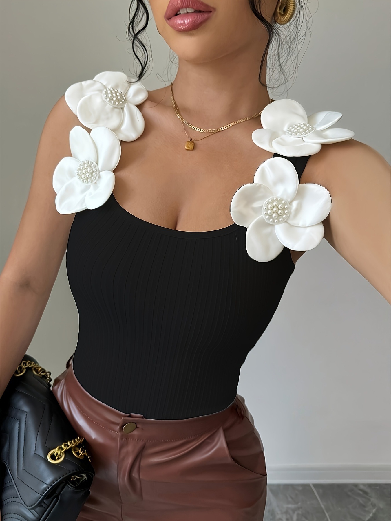 Главная страница > 2025 европейский и американский трансграничный жилет женский летний новый темперамент повседневный трехмерный цветочный орнамент трикотажный топ без рукавов