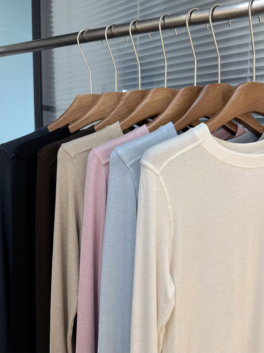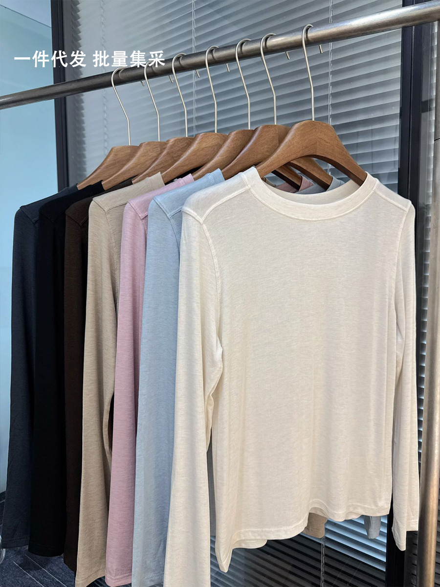 Главная страница > 秋冬天丝醋酸打底衫女莱赛尔羊毛圆领保暖针织衫纯色内搭长袖T恤