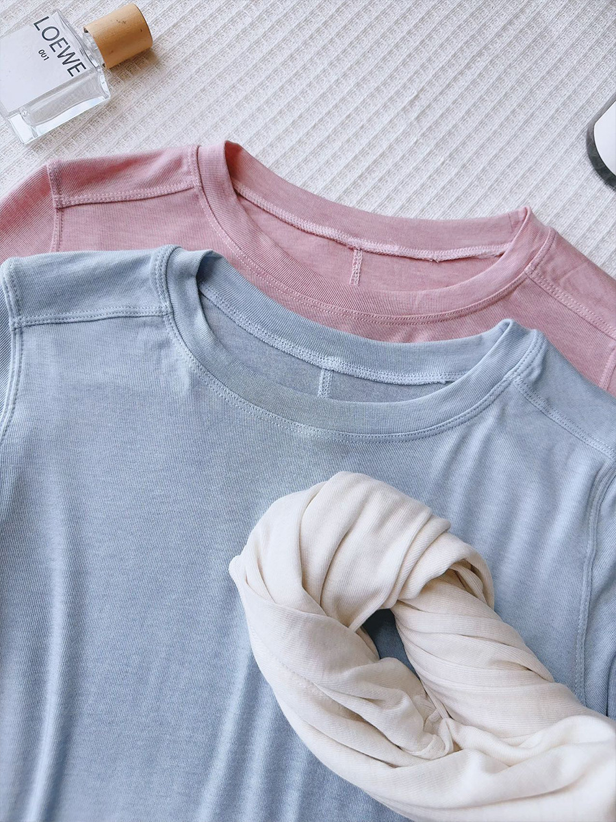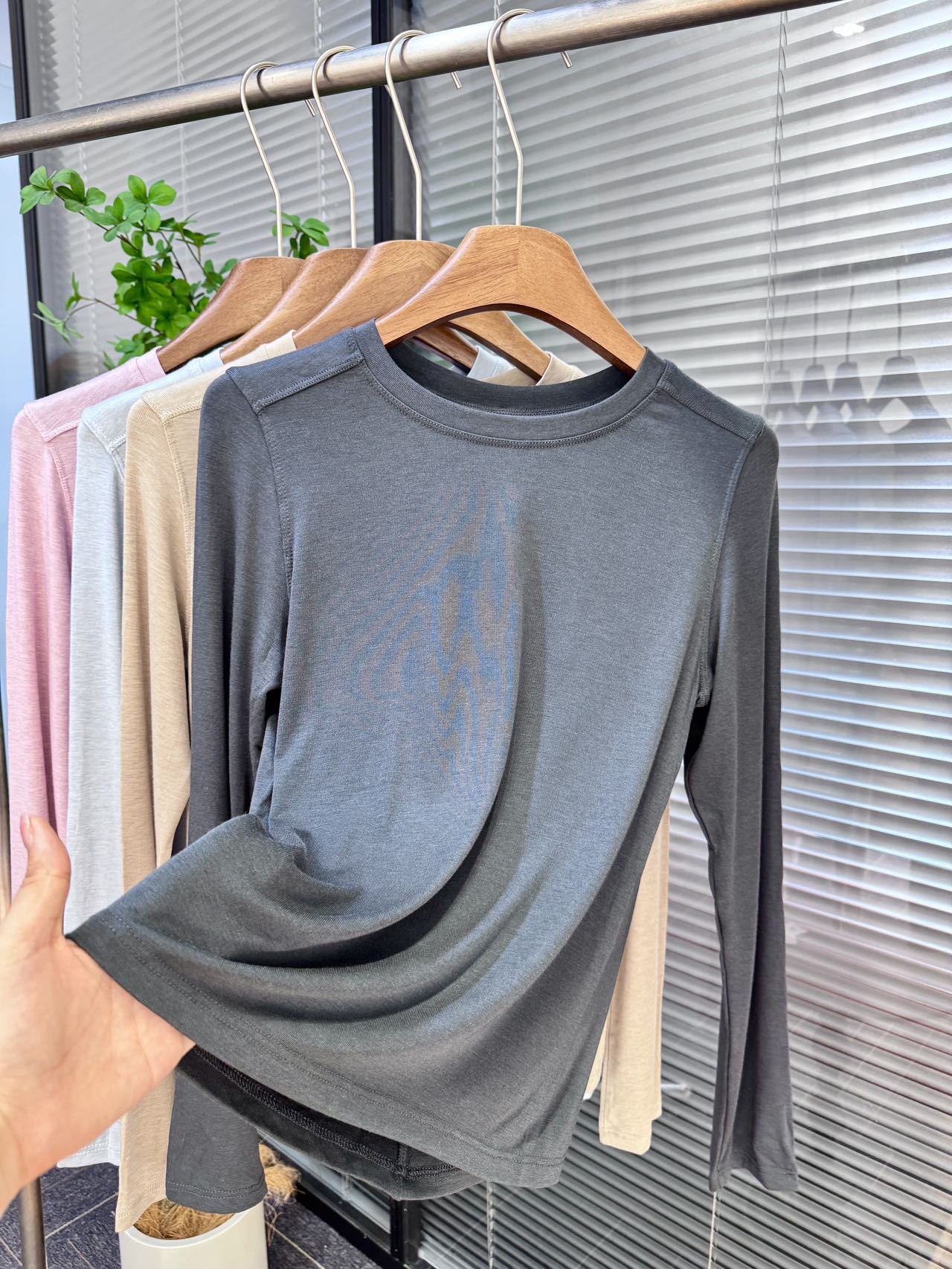 秋冬天丝醋酸打底衫女莱赛尔羊毛圆领保暖针织衫纯色内搭长袖T恤