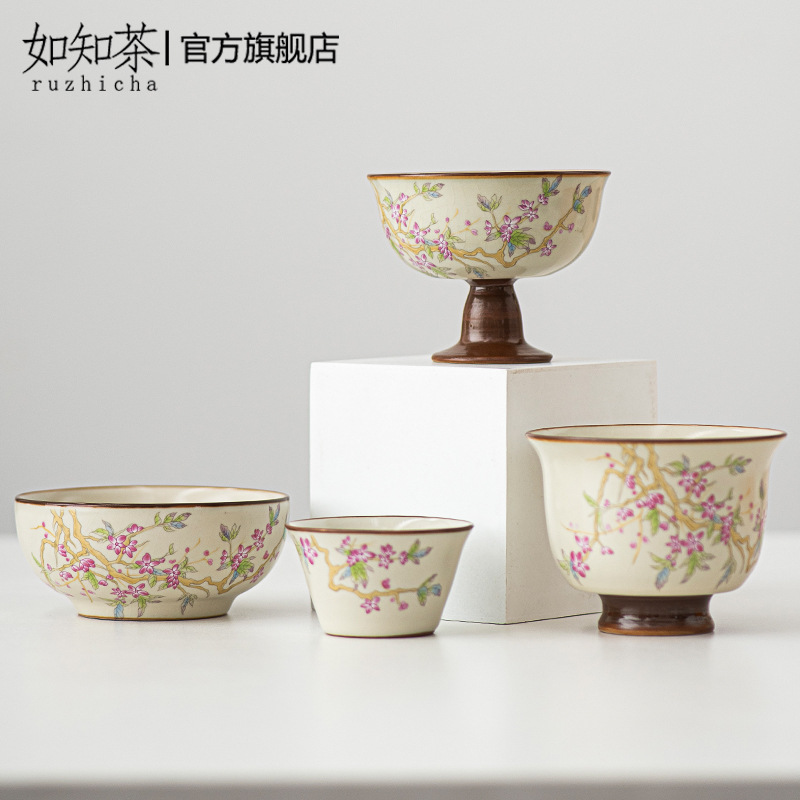 Главная страница > Секретная чашка желтой печи Ру, розовый персиковый веток, чашка домашнего чайного сервиза кунг-фу