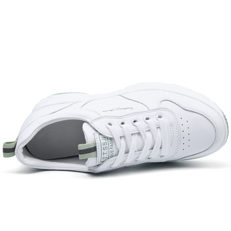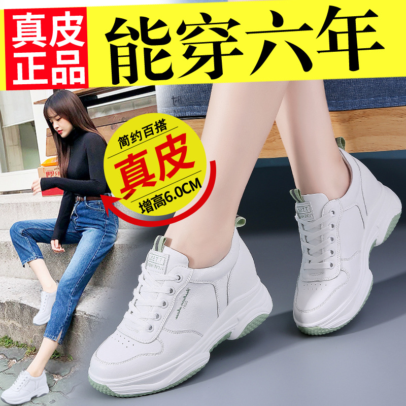 Белая обувь на внутреннюю высоту, Женская на весну и осень, новая Универсальная Спортивная повседневная женская обувь из натуральной кожи на танкетке для студентов