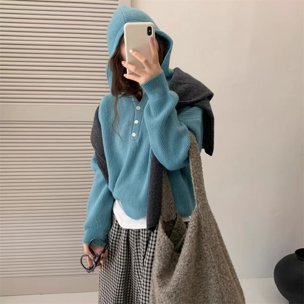Главная страница > Конфеты цвета с капюшоном свитер для женщин носят осенью и зимой новый ленивый ветер свободный дикий повседневный трикотаж топ