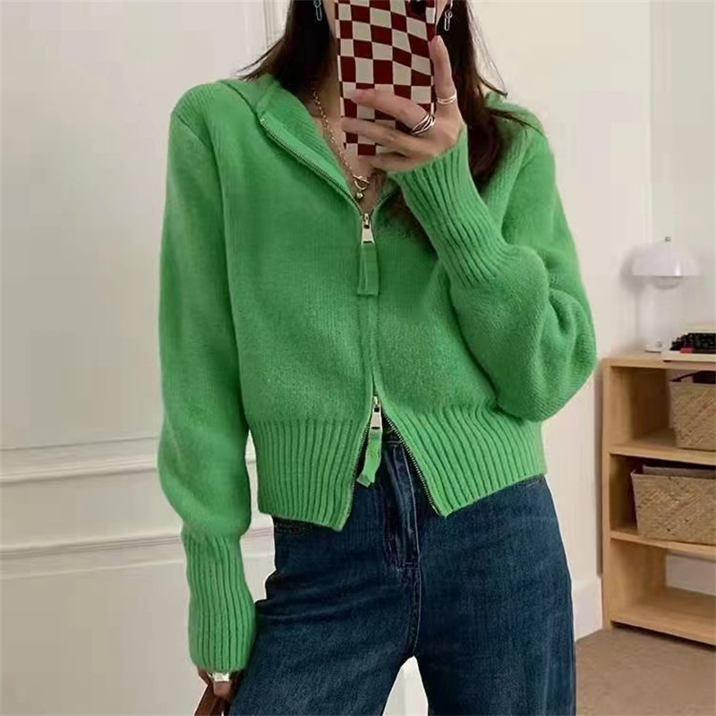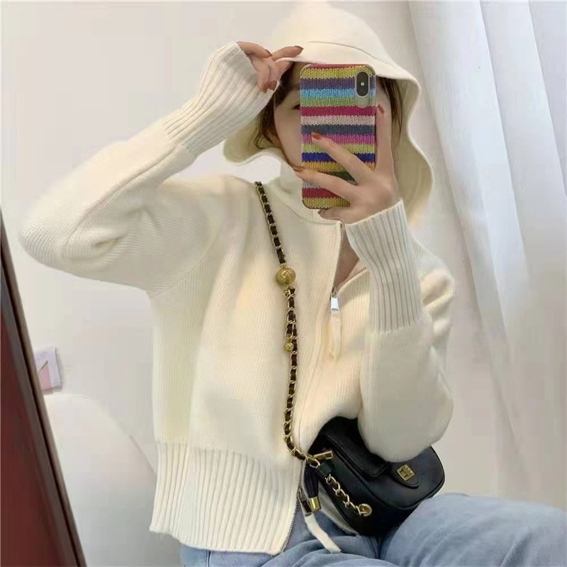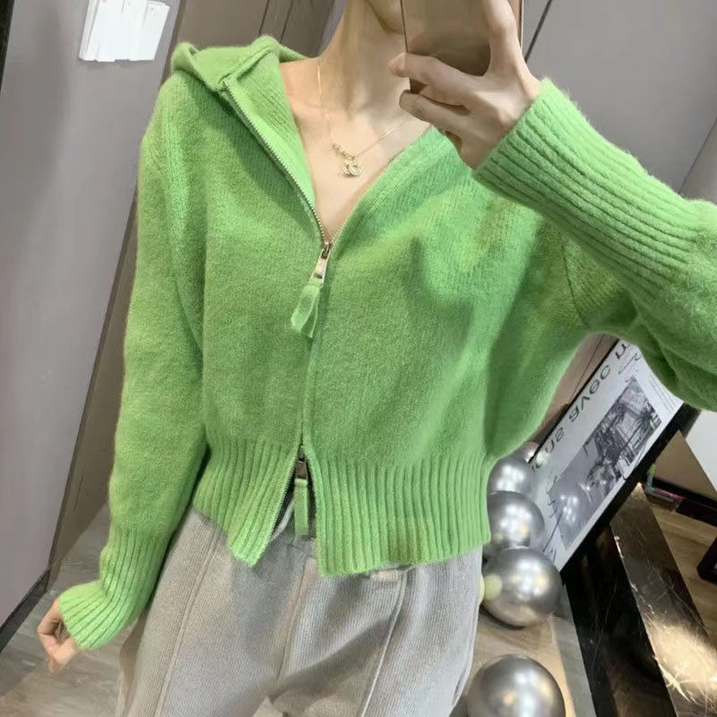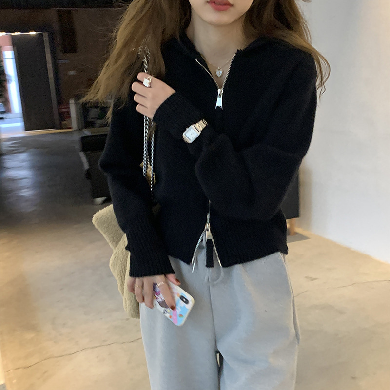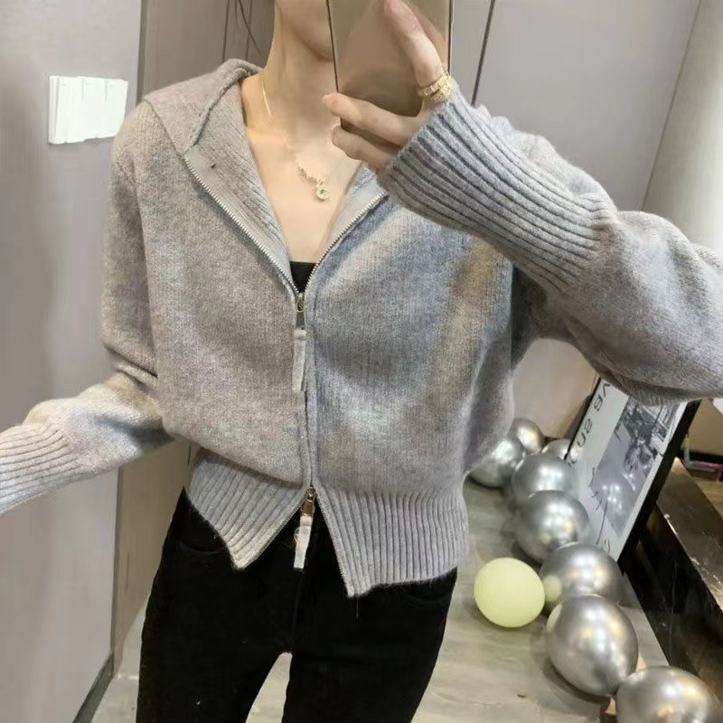 Главная страница > Синий свитер Klein для женщин с уникальным дизайном, двусторонней молнией, короткий вязаный кардиган с капюшоном, модный топ в стиле интернет-знаменитостей, универсальный.