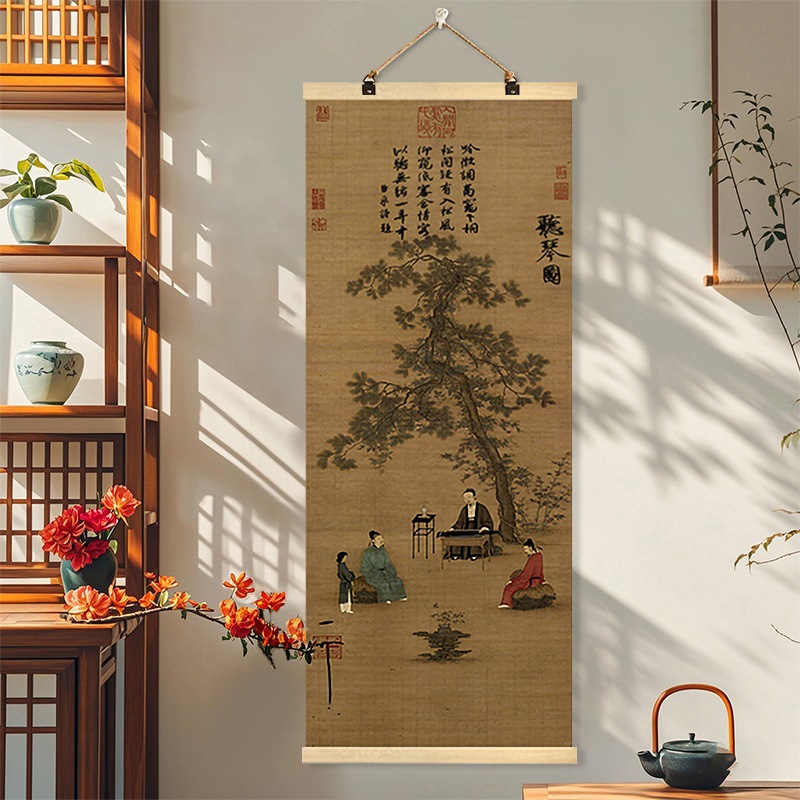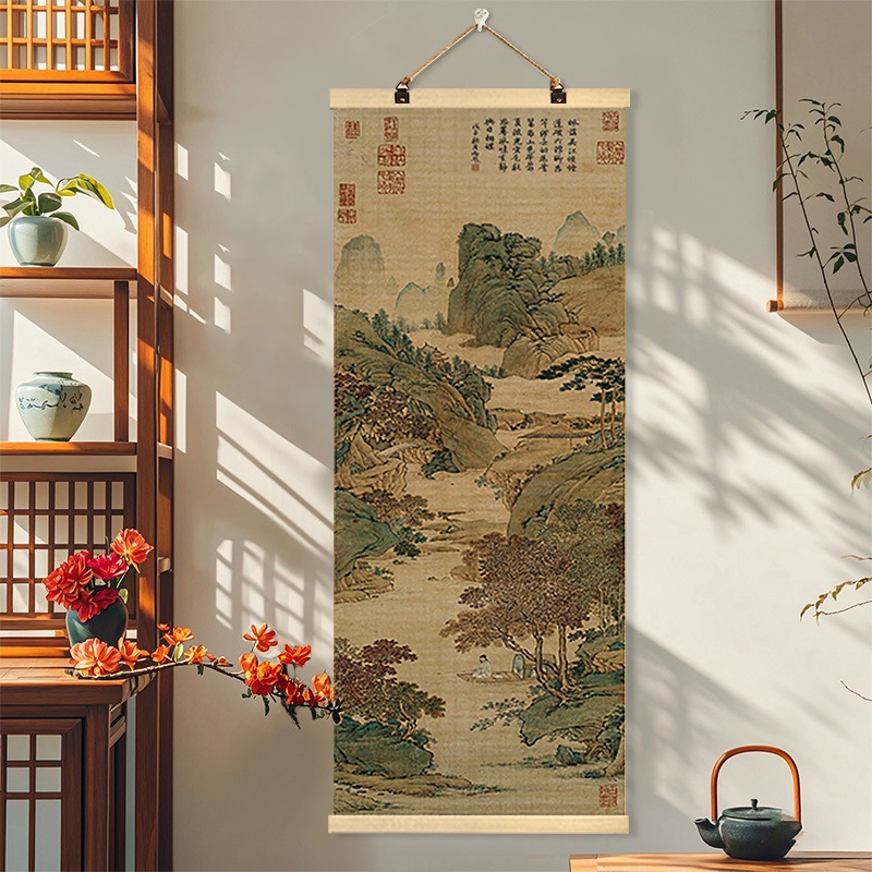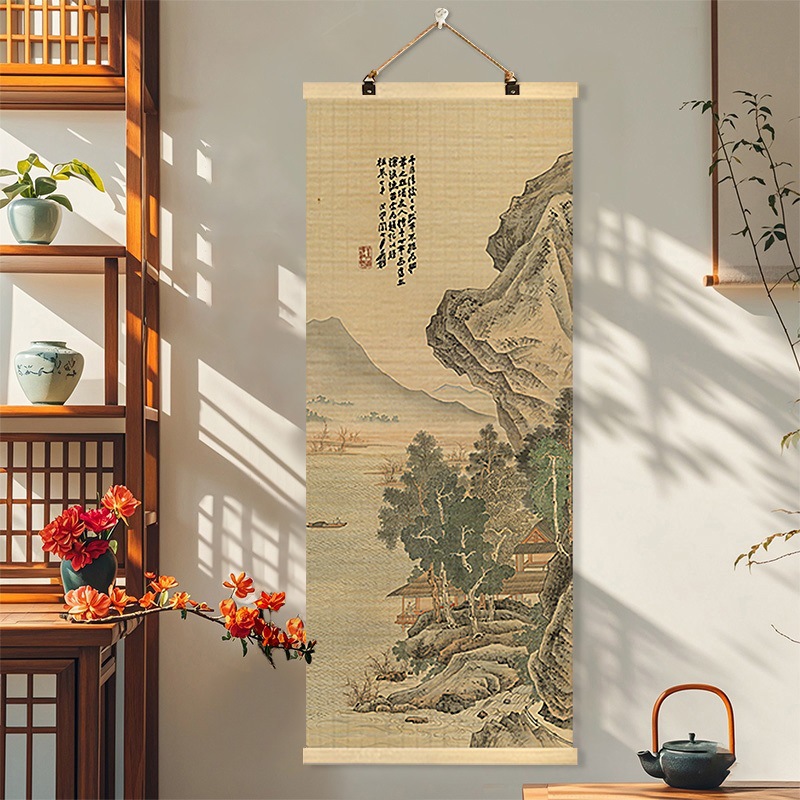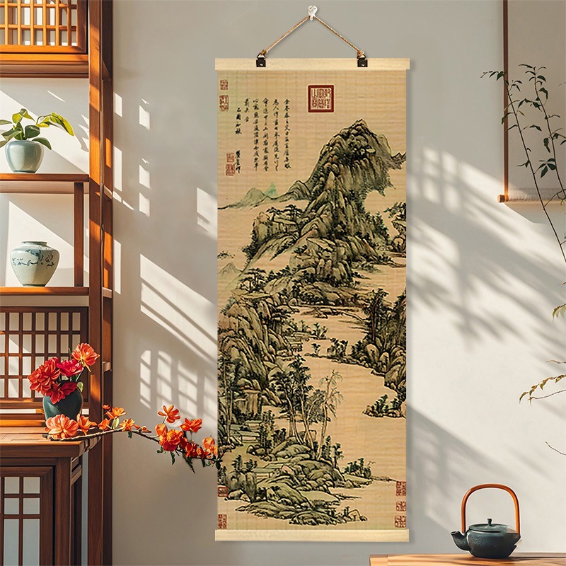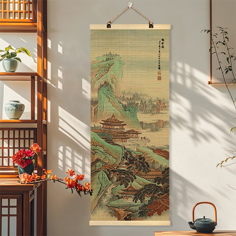 Главная страница > В китайском стиле ретро-стиль бамбуковые занавески, висящие картины, гостиная, декоративная роспись, чайная комната фон, вертикальная стена, висящие картины, китайская живопись