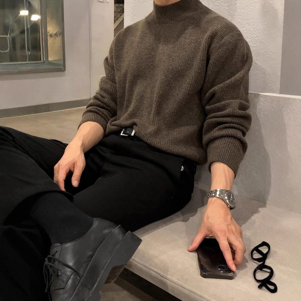 Главная страница > SJY осенний и зимний свитер с половинным воротником мужской корейской тенденции сплошной цвет трикотаж с воротником нижний свитер теплый внутри