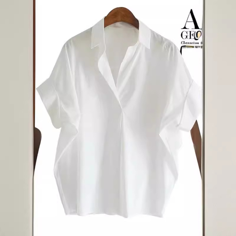 Новинка 2023 года, летняя рубашка в корейском стиле, свободная элегантная рубашка с короткими рукавами в гонконгском стиле, универсальный топ, свободная рубашка с воротником «летучая мышь»
