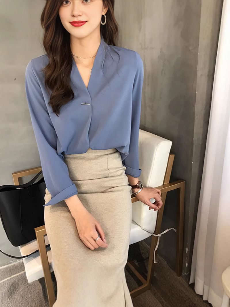 Главная страница > Новый стиль нежный стиль темперамент V-образный вырез блузка с длинными рукавами блузка