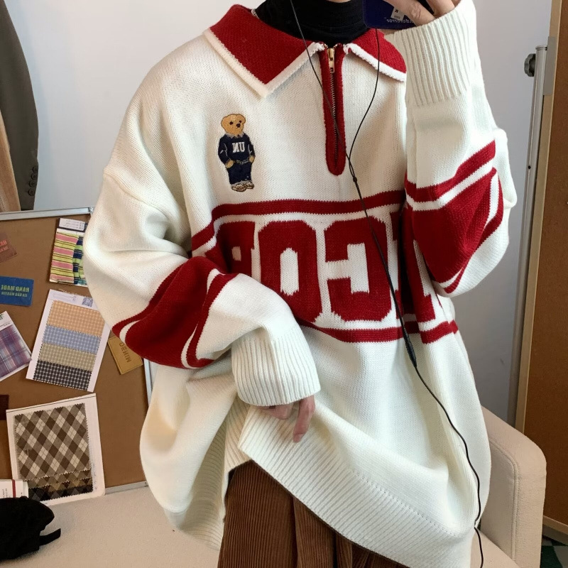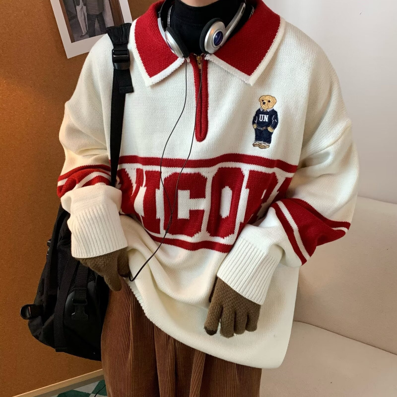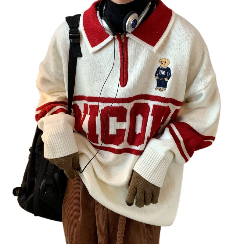 Главная страница > Американский ретро вышивка медвежонка колледжа стиль пары трикотажные свитера с лацканами для мужчин и женщин свитера с длинными рукавами