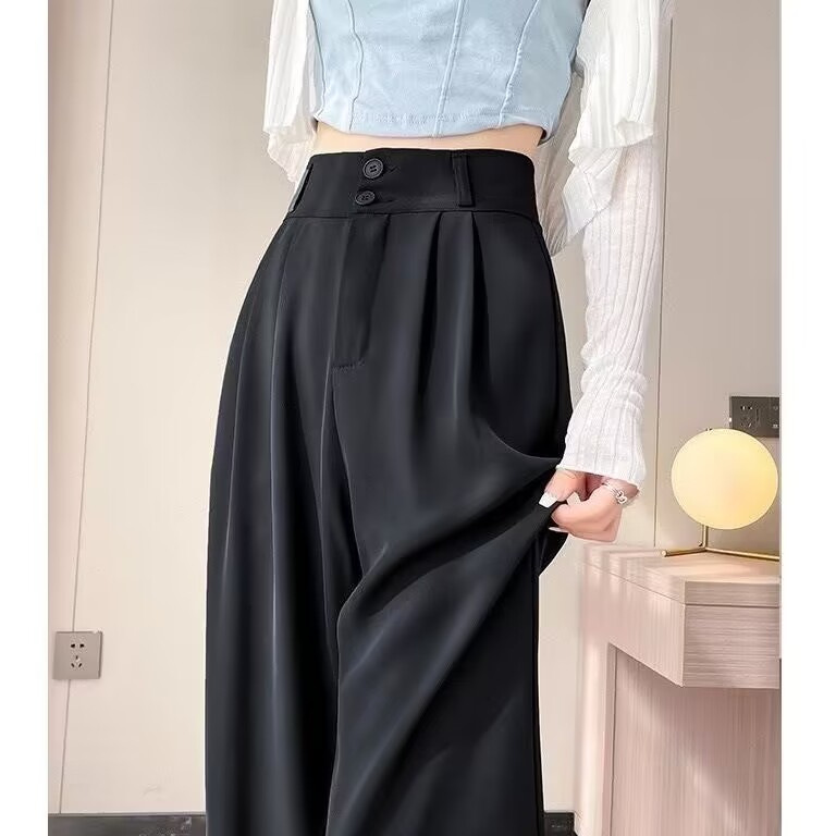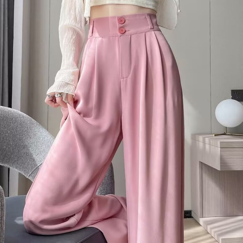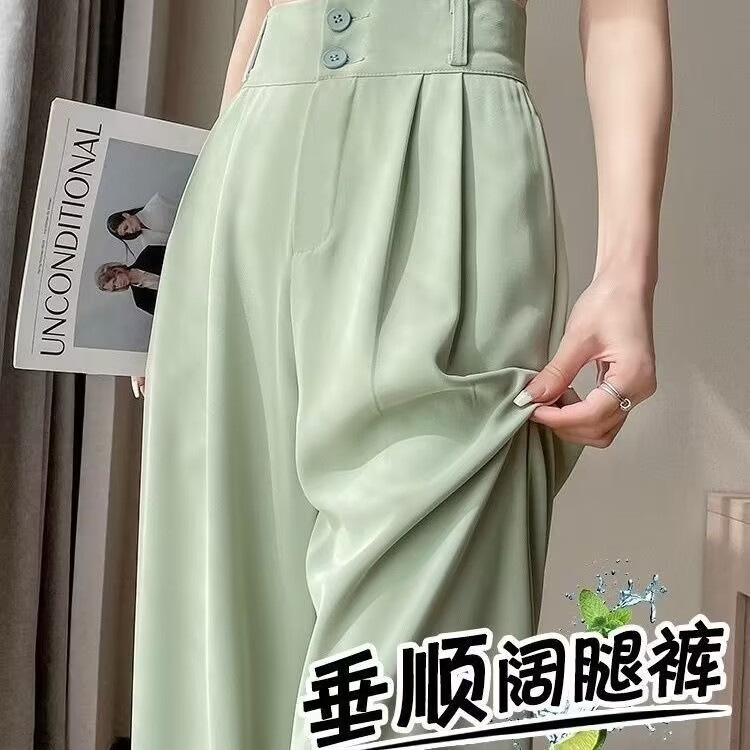 Главная страница > Костюмные брюки для женщин весна и лето тонкий ледяной шелк с высокой талией тонкие прямые повседневные драпированные широкие брюки для женщин трансграничная поставка оптом