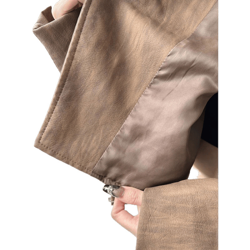 Главная страница > Ретро осеннее пальто женственность высокого уровня 2024 новый мотоциклетный куртка кожаный свободный короткий топ