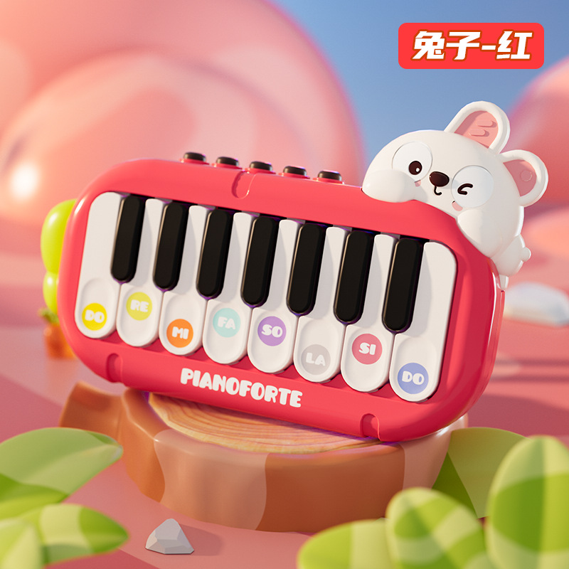 Карманное пианино [Симпатичный кролик, красный] Цветная коробка с батарейкой